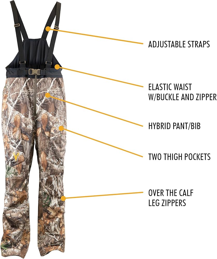 • بنطال مريلة مموه للرجال: هذا السروال الهجين هو جزء من سلسلة الغلاف الناعم المصنوعة من مادة مقاومة للرياح ومقاومة للماء لتوفير الحماية القصوى دون زيادة حجمها ضد بعض أصعب الظروف الجوية، بينما يمتزج مموه Realtree Edge مع بيئتك.