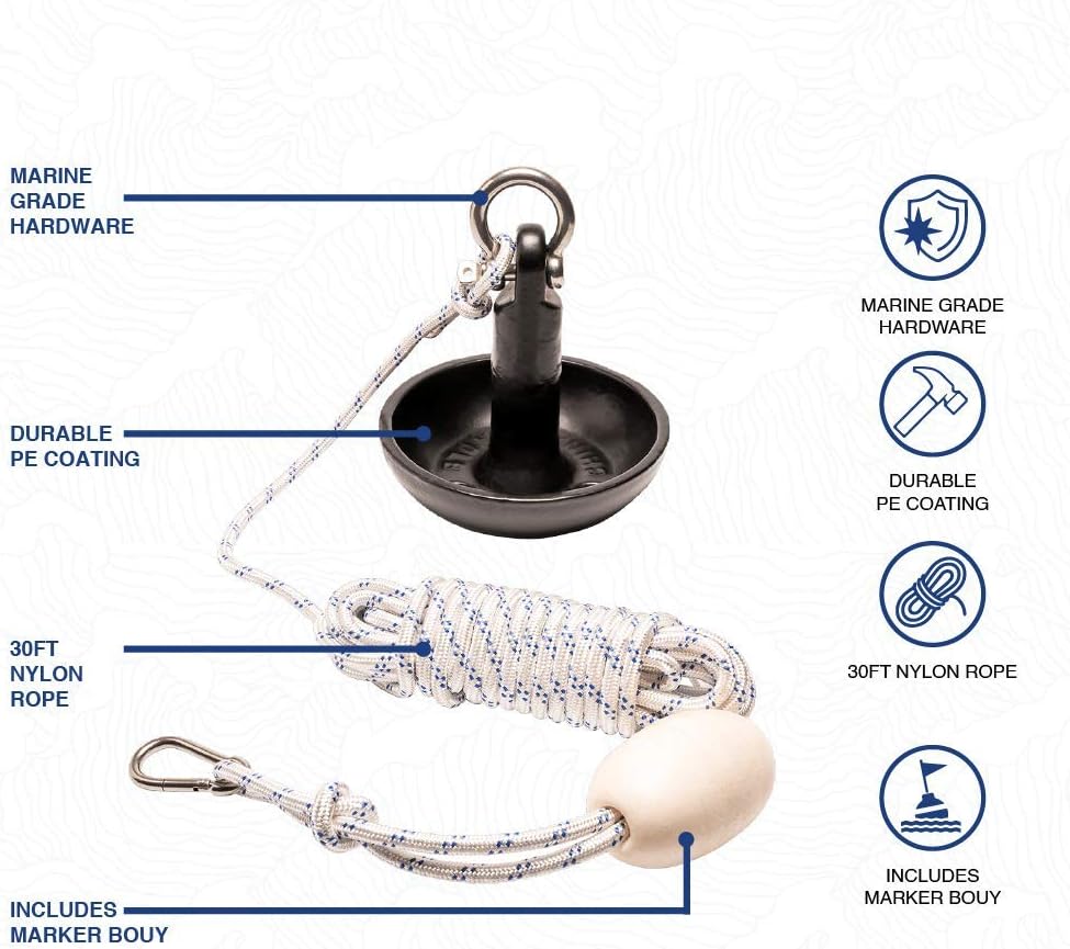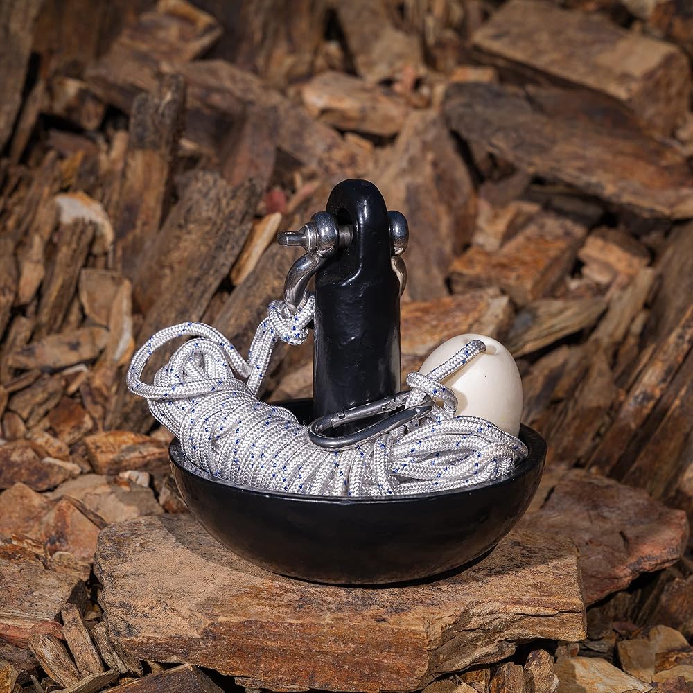 COMPLETE KIT: This Kit includes everything you need.mushroom anchor, shackle, rope, bouy, carabiner to clip to your boat, and a carrying bag.