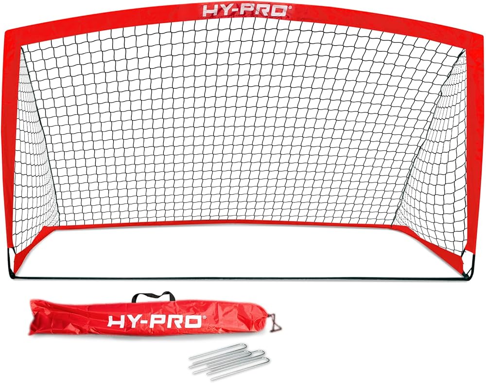 Introducing the Hy-Pro Pop-Up Flexi Goal - the ultimate gateway to unlimited soccer fun! Unleash the soccer star within you with our innovative Pop-up Flexi Goal, the ideal addition to your sports equipment collection. Designed for all your needs, the goal combines portability, durability and versatility in order to meet the needs of players of all skill levels and ages. The Hy-Pro Pop-up Flexi Goal brings hours of enjoyment, skill building and training opportunities. With the Hy-Pro Pop-up Flexi Goal you can say goodbye to time consuming assembly! Our pop up design lets you set up the goal within seconds, giving you more game time. Perfect for impromptu matches in the backyard, park or even for training! This design also makes for a quick and easy fold. Coupled with an easy carry bag you can easily take your goal with you! Made out of high quality fiberglass, your Hy-Pro Pop-Up Flexi Goal is built to last being both sturdy and lightweight, making it a perfect companion for your soccer adventures. We understand that goals are not necessarily one size fits all. This is why we provide multiple size options as well as a 2-in-1 target goal option! The Hy-Pro Pop-up Flexi Goal is also a great gift idea for any soccer fan, whether for birthdays, holidays or just because!