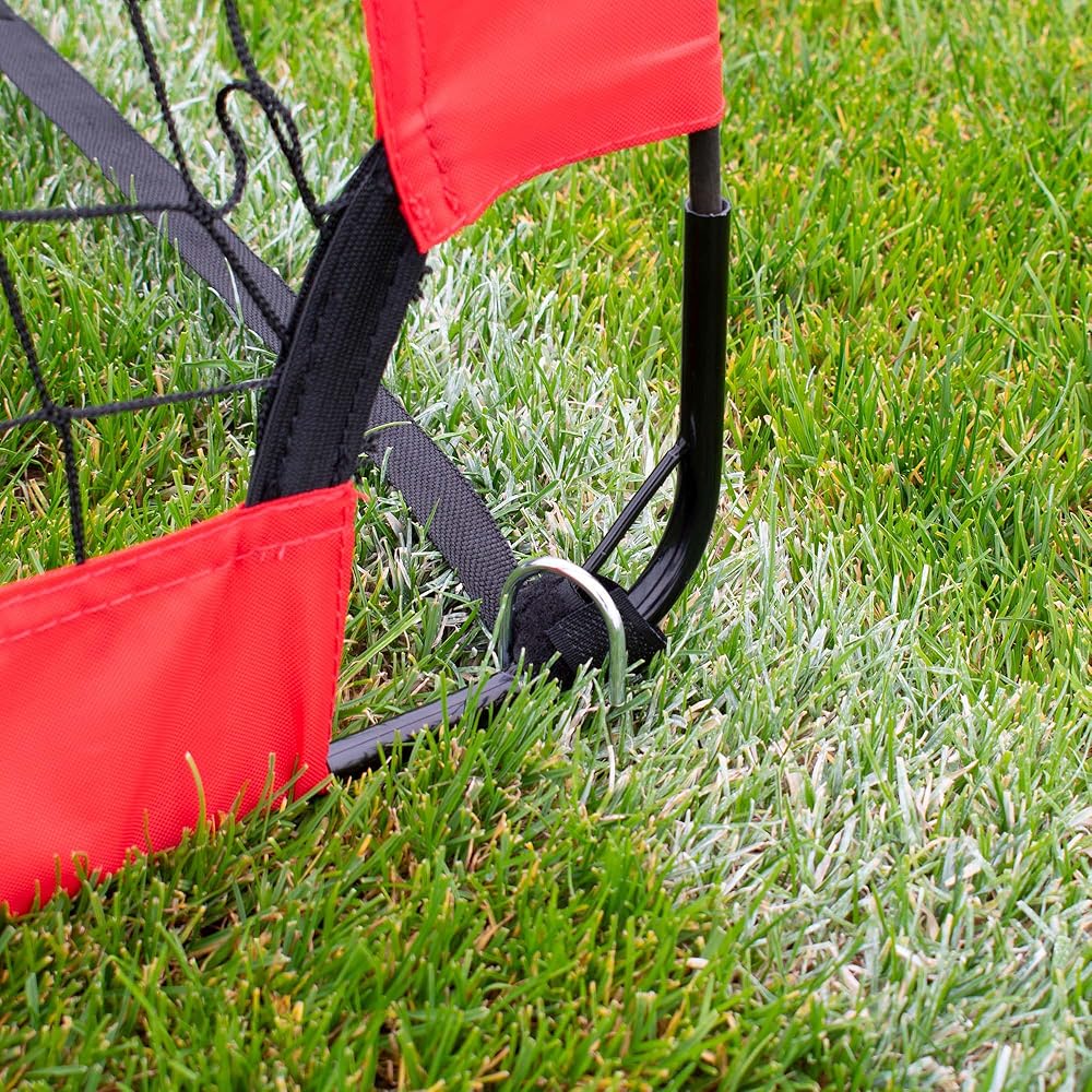• SECURE: Comes with 4 ground pegs so that it can be securely fastened to the ground. Enjoy smashing shots whilst the goal stays firmly in place.