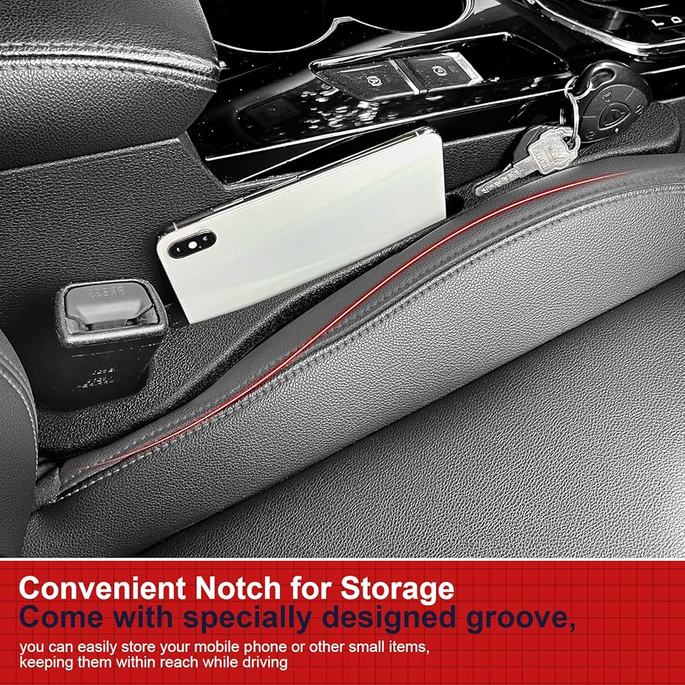 فتحة مريحة للتخزين: يأتي حشو فجوة مقعد السيارة الخاص بنا مع أخدود مصمم خصيصًا، يمكنك بسهولة تخزين هاتفك المحمول أو غيرها من الأشياء الصغيرة، مما يبقيها في متناول اليد أثناء القيادة.