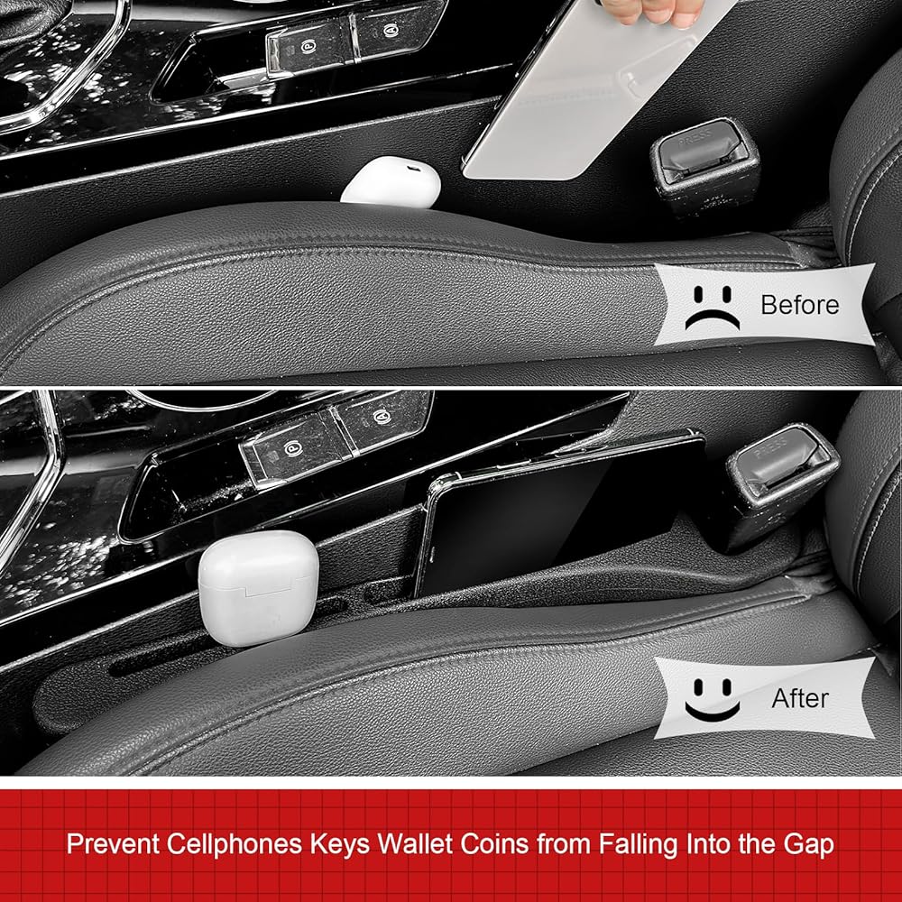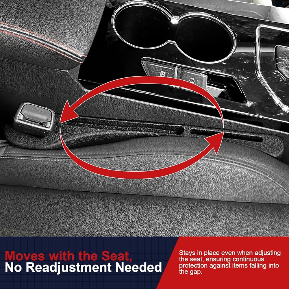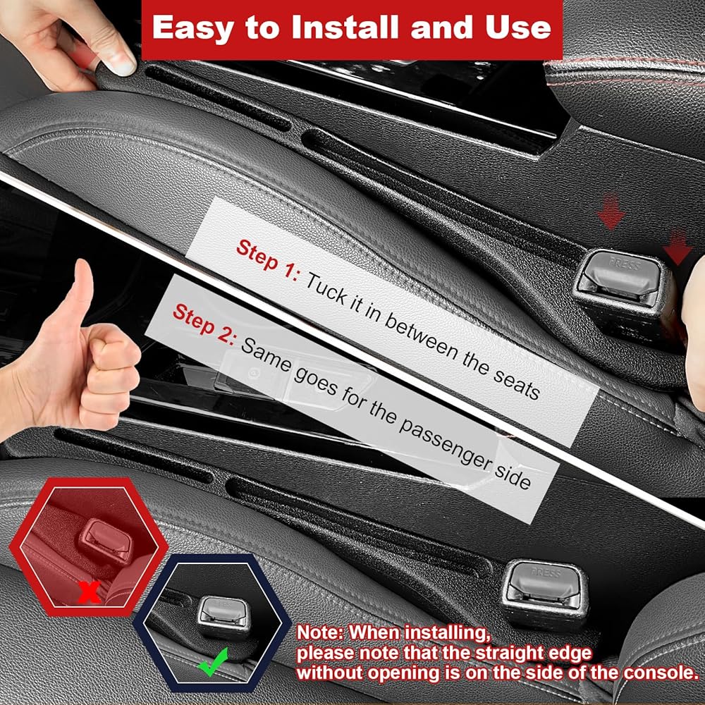 سهولة التركيب والتنظيف: تم تصميم مانع شقوق السيارة الخاص بنا ليتحرك مع المقعد، مما يجعل تركيبه سهلاً. كما أنه سهل التنظيف، فقط امسحه بقطعة قماش مبللة. تشتمل كل عبوة على قطعتين لسد الفجوات، واحدة لجانب السائق وواحدة لجانب الراكب.