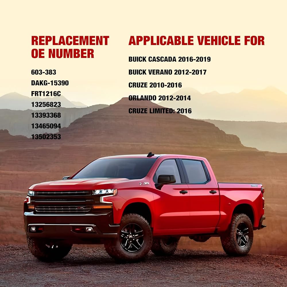 • 🚗【رقم القطعة الأصلية المرجعي】رقم (أرقام) جزء الشركة المصنعة لديه 603-383، DAKG-15390، FRT1216C، 13256823، 13393368، 13465094، 13502353. ⚠ملاحظة: يرجى التحقق من سيارتك في نظام مرشح Amazon Fitment في الزاوية اليسرى العليا. يرجى التأكد من مطابقة أرقام الأجزاء الدقيقة بين هذا الجزء والجزء الذي تستبدله. شكرًا!