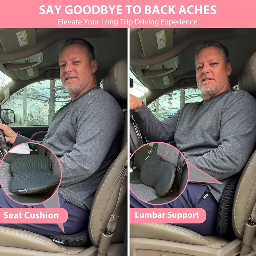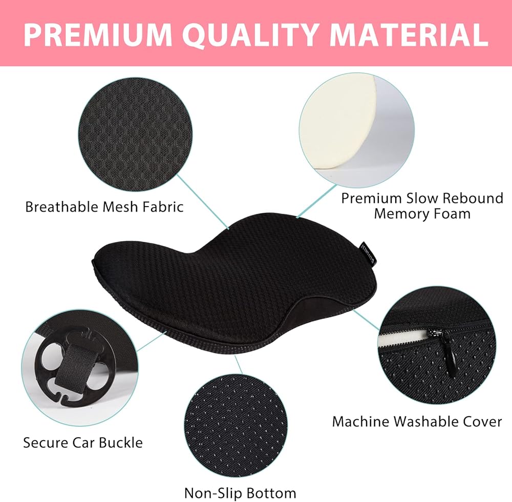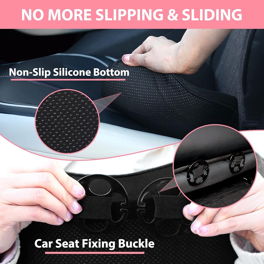 لا مزيد من الانزلاق والانزلاق - يحافظ الجزء السفلي غير القابل للانزلاق والحزام الآمن على الوسادة في مكانها، مما يجعل من السهل تركيبها وإزالتها. تتكيف الإسفنج الذكي عالي الجودة والكثافة مع شكل جسمك، مما يوفر توازنًا مثاليًا بين النعومة والدعم المخصص حيث تحتاج إليه بشدة. استمتع بحب جديد للقيادة، خاليًا من الانزعاج والأوجاع.