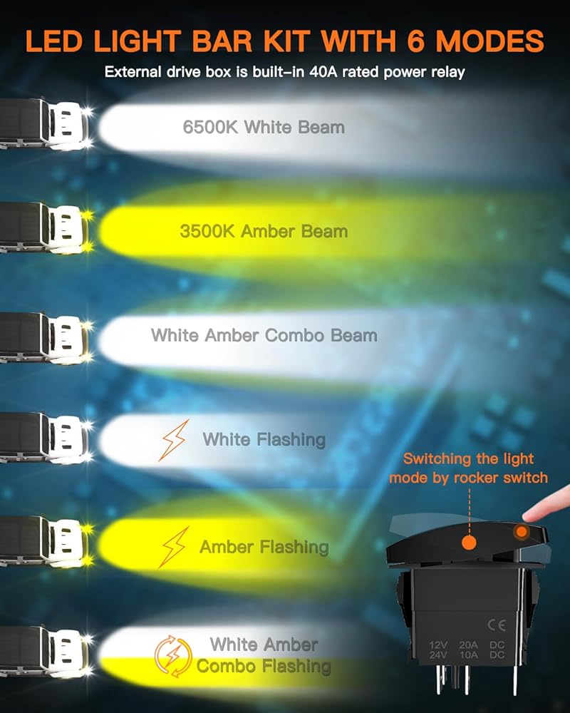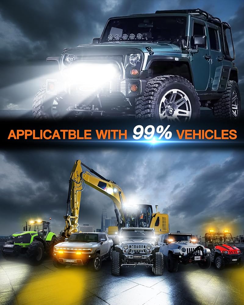 EXCELLENT PERFORMANCE LIGHT BAR KIT—LEDMIRCY off road light bar LEDs chip uses automobile top-level chips, which high output of 24000LM/pair, which can shine as bright as day even in darkness. The shell of the LED light bar is made of 6063 Aviation Aluminum and high-definition PC outer lens, which not only show the metallic texture of the LED light bar, but also excellent transparency provide more sense of security for you.