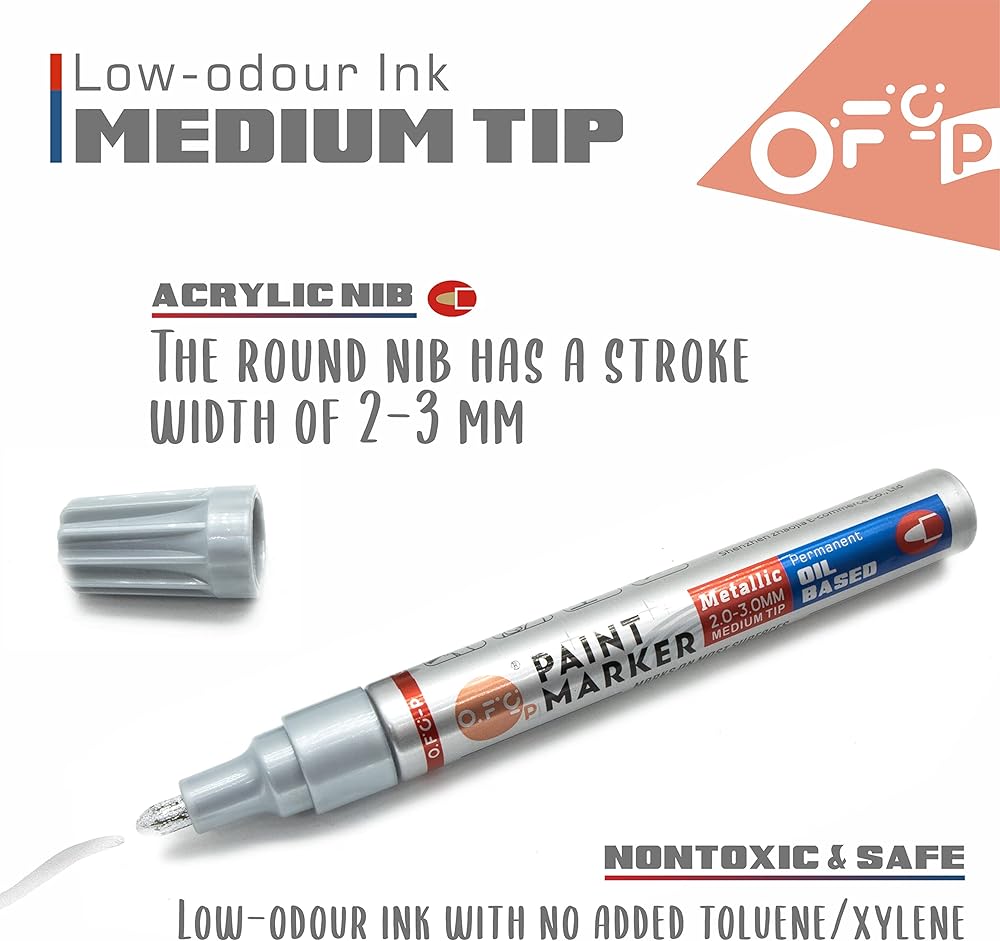 Permanent and smudge-proof writing and decorating on smooth and even dark and transparent materials, e.g. glass, stone,metal, plastic and coated paper;opaque ink for long-lasting results.