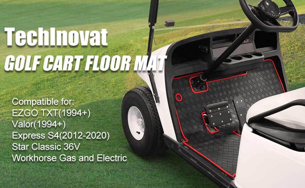 ⛳𝐎𝐍𝐋𝐘 𝐅𝐈𝐓 --- TechInovat golf cart mat is compatible with all EZGO TXT Trimes(1994+), Valor(1994+), Express S4(2012-2020), Star Classic 36V, Workhorse Gas and Electric.