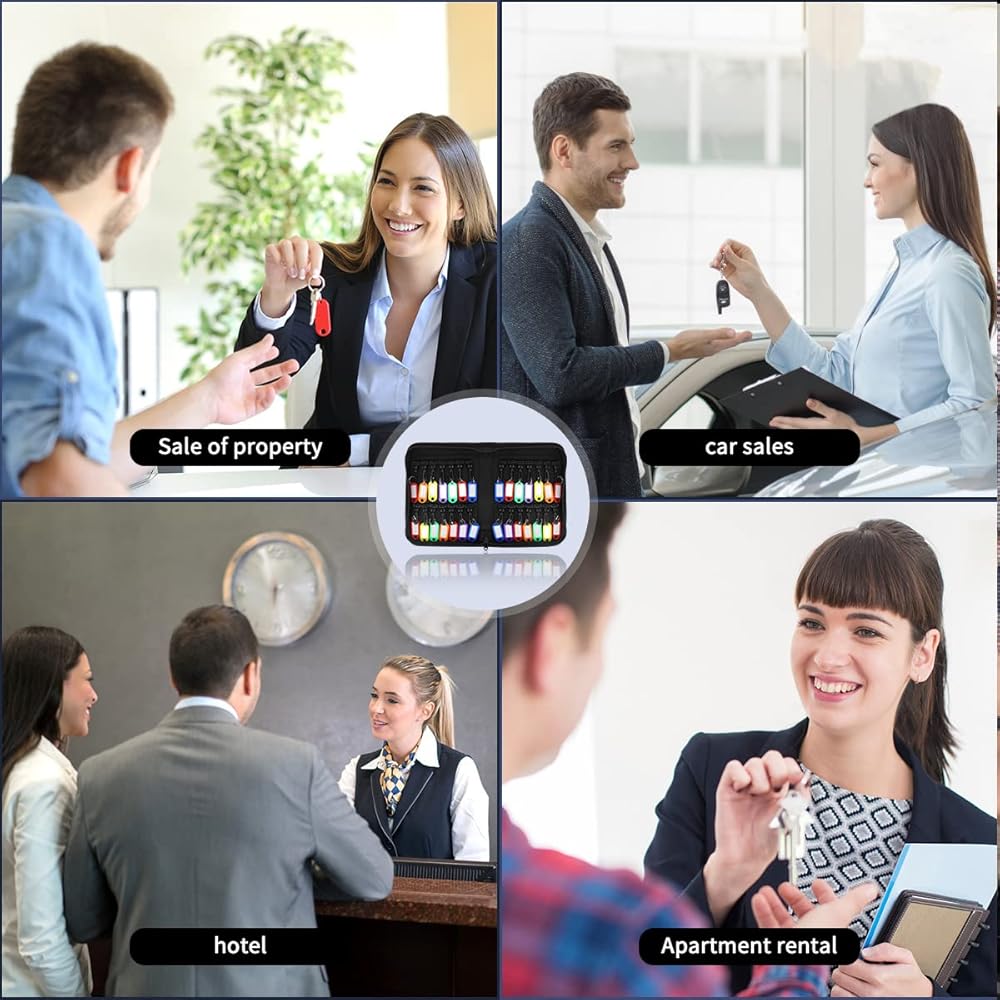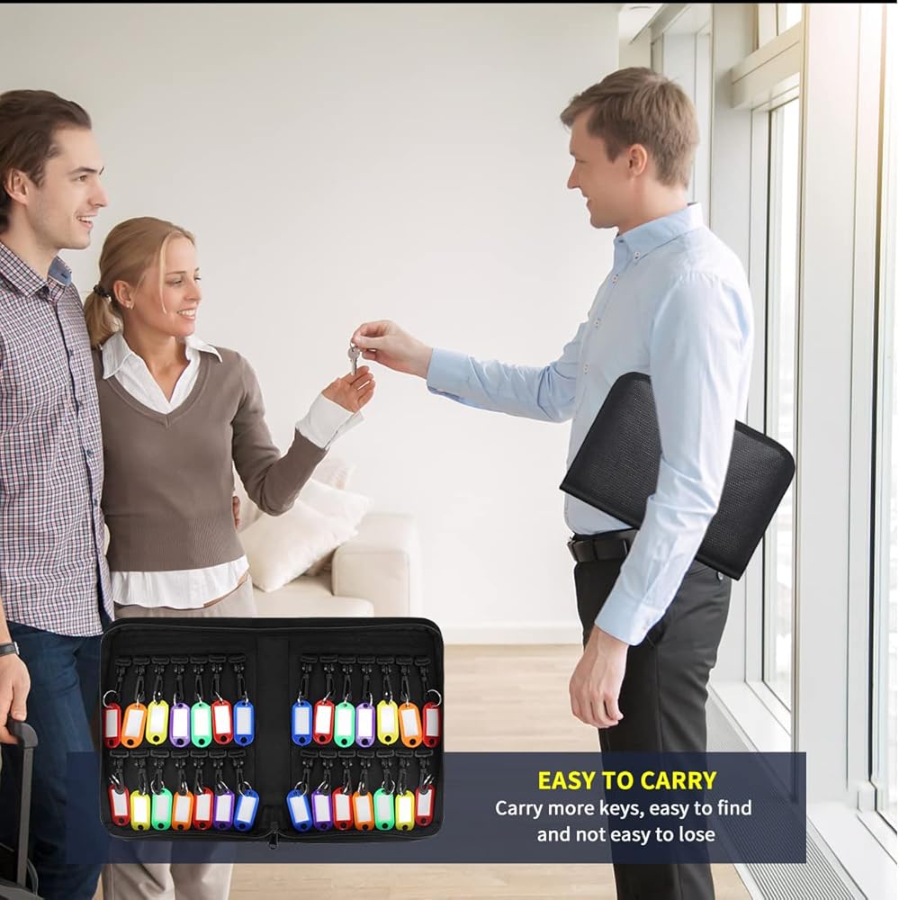 Portable Zippered Key Organizer,Fireproof and Waterproof Key case with 28 Key Tags Key Storage, Landlord Zipper Key Binder.Key Box Organizer for Real Estate Sales, Hotels, Car Service