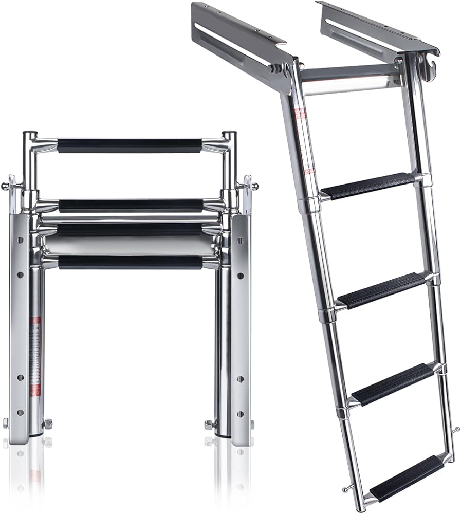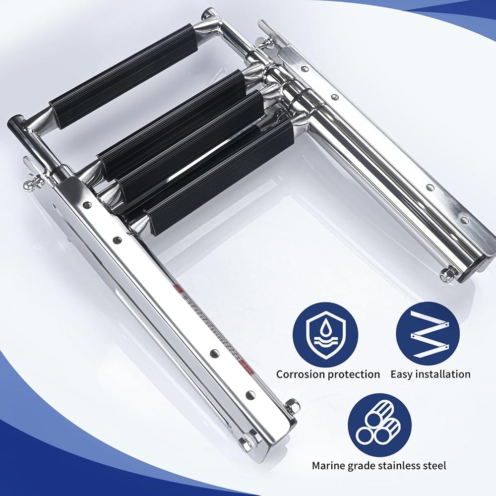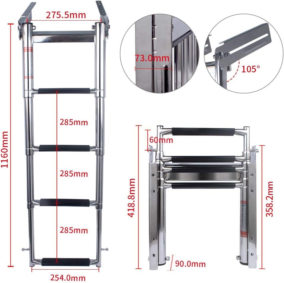 - 【تصميم تلسكوبي】- يمكن طي هذا السلم بسهولة بأناقة عند عدم الاستخدام، ولا يأخذ مساحة كبيرة، ومناسب لمجموعة متنوعة من السفن.