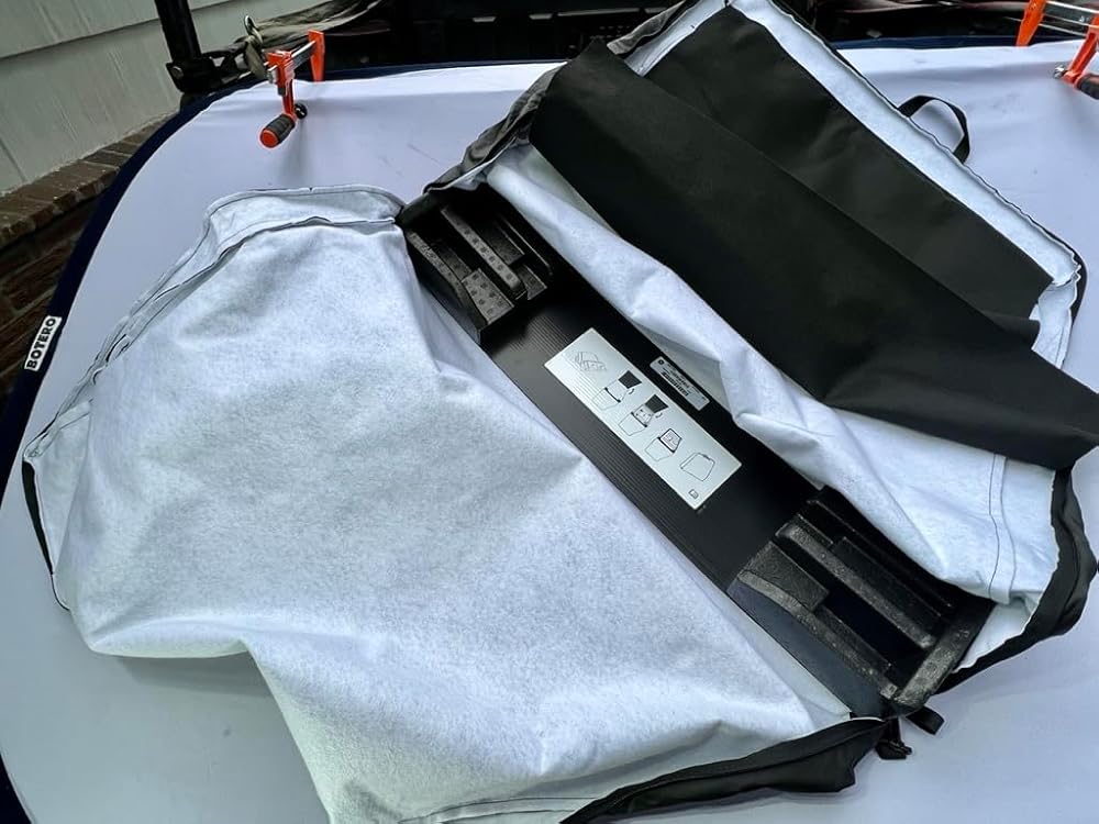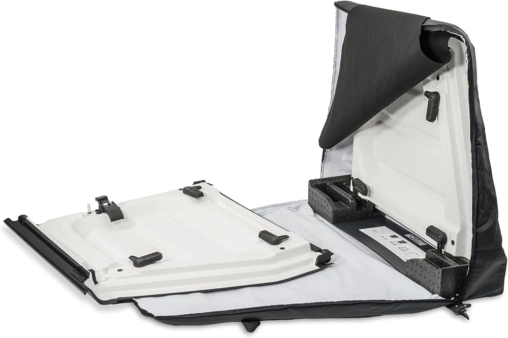 The integrated straps allow the bag to be hung from the headrests to save space, and top handles allow for easy transport. Keep your hard tops safe and scratch free with this OEM bag made by Mopar Jeep. Inside bag has felt type {White} material to keeps tops separated and scratch free. Bottom bag corners have foam blocking to keep tops separated from each other in grooved slots in foam.