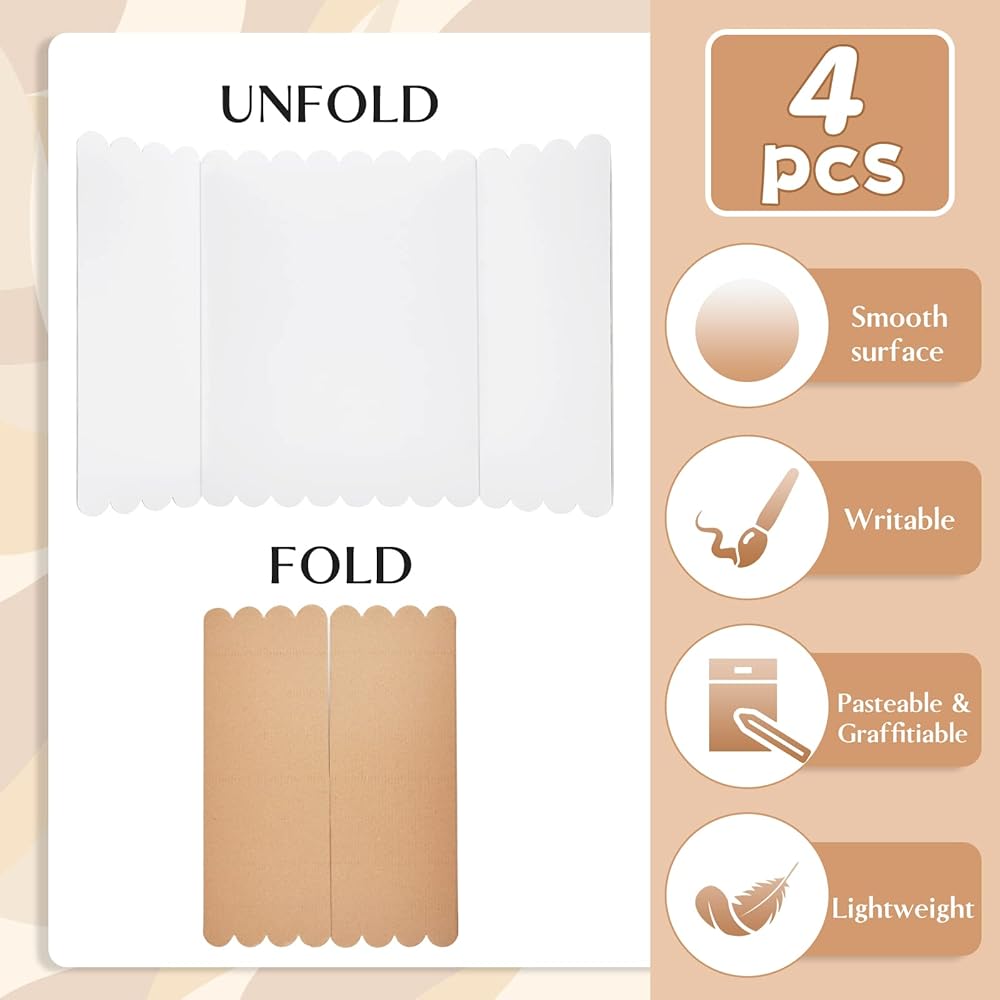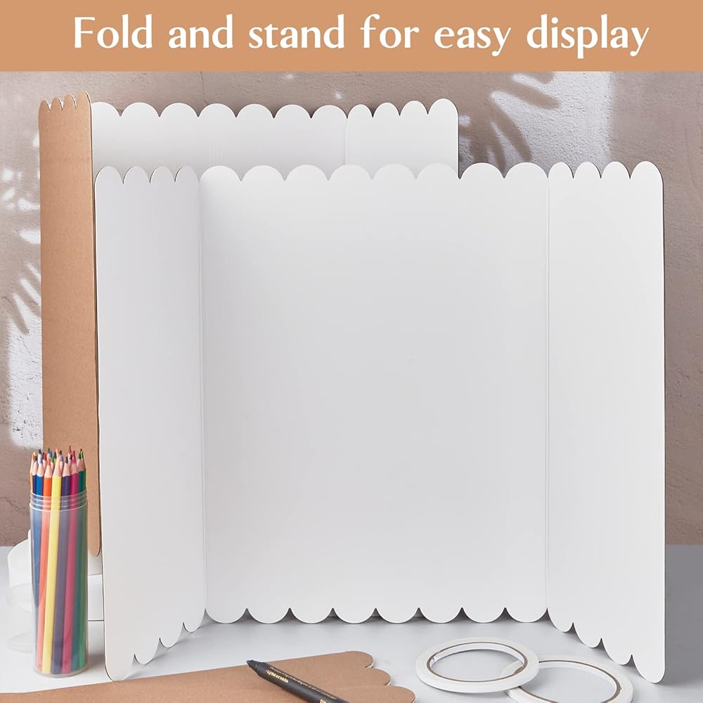 Value Pack: You will get 4 pieces white tri fold poster boards and 2 rolls of double sided adhesive tapes, the quantity of which meets daily needs.