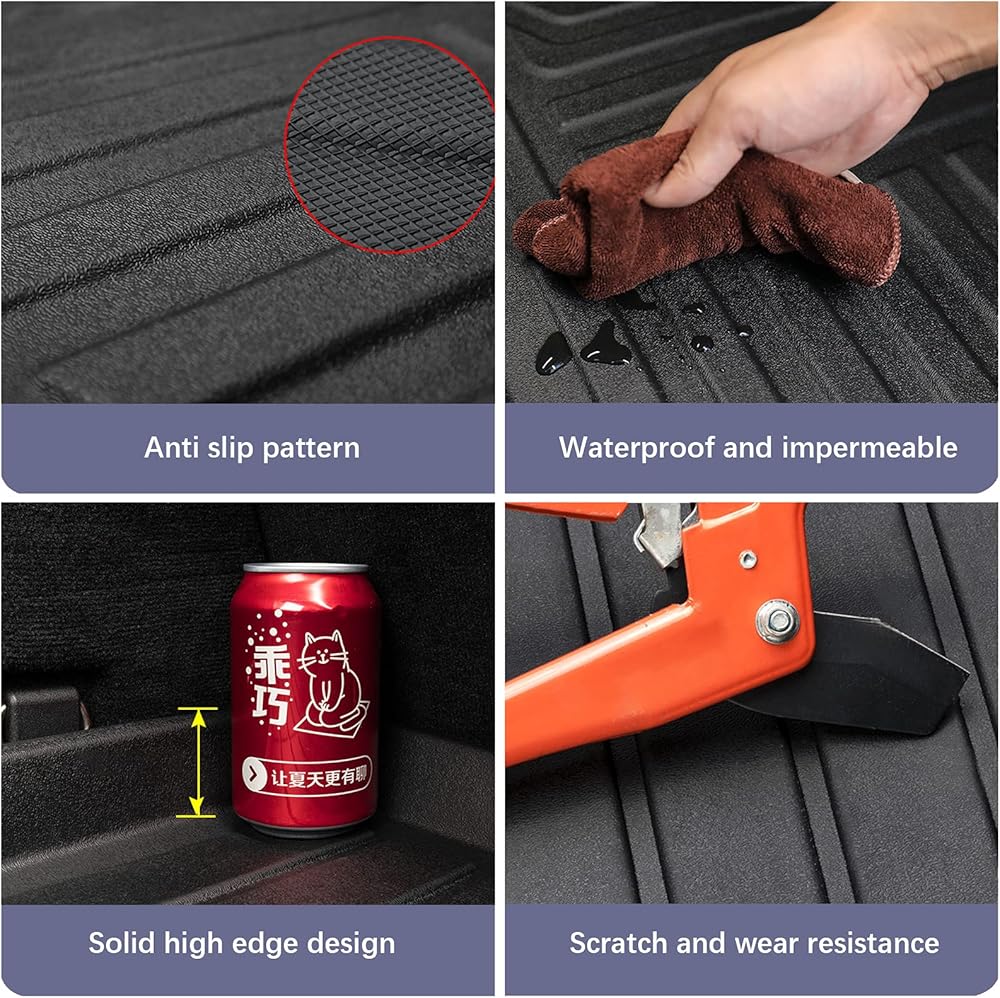 • 【Scratch Resistance】The Strong flexibility of Our rear trunk mat & backrest mat,folding is not easy to break,waterproof and resistant to dirt,raised edges effectively protect your carpet from dirt, grime, oil spills, paint stains and other corrosive messes.