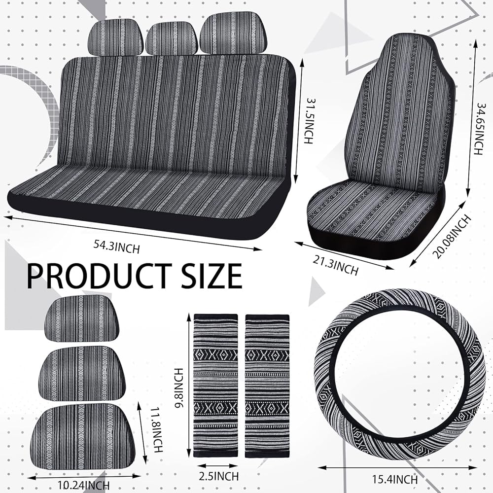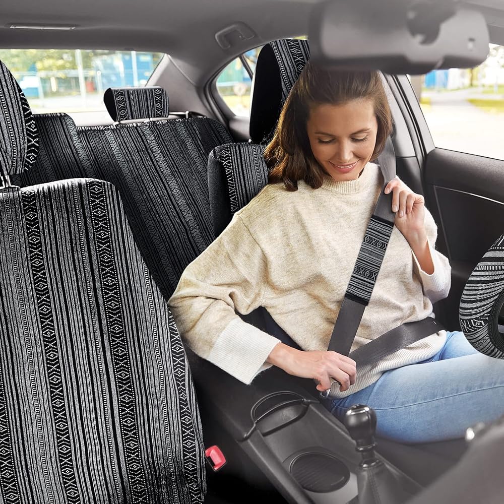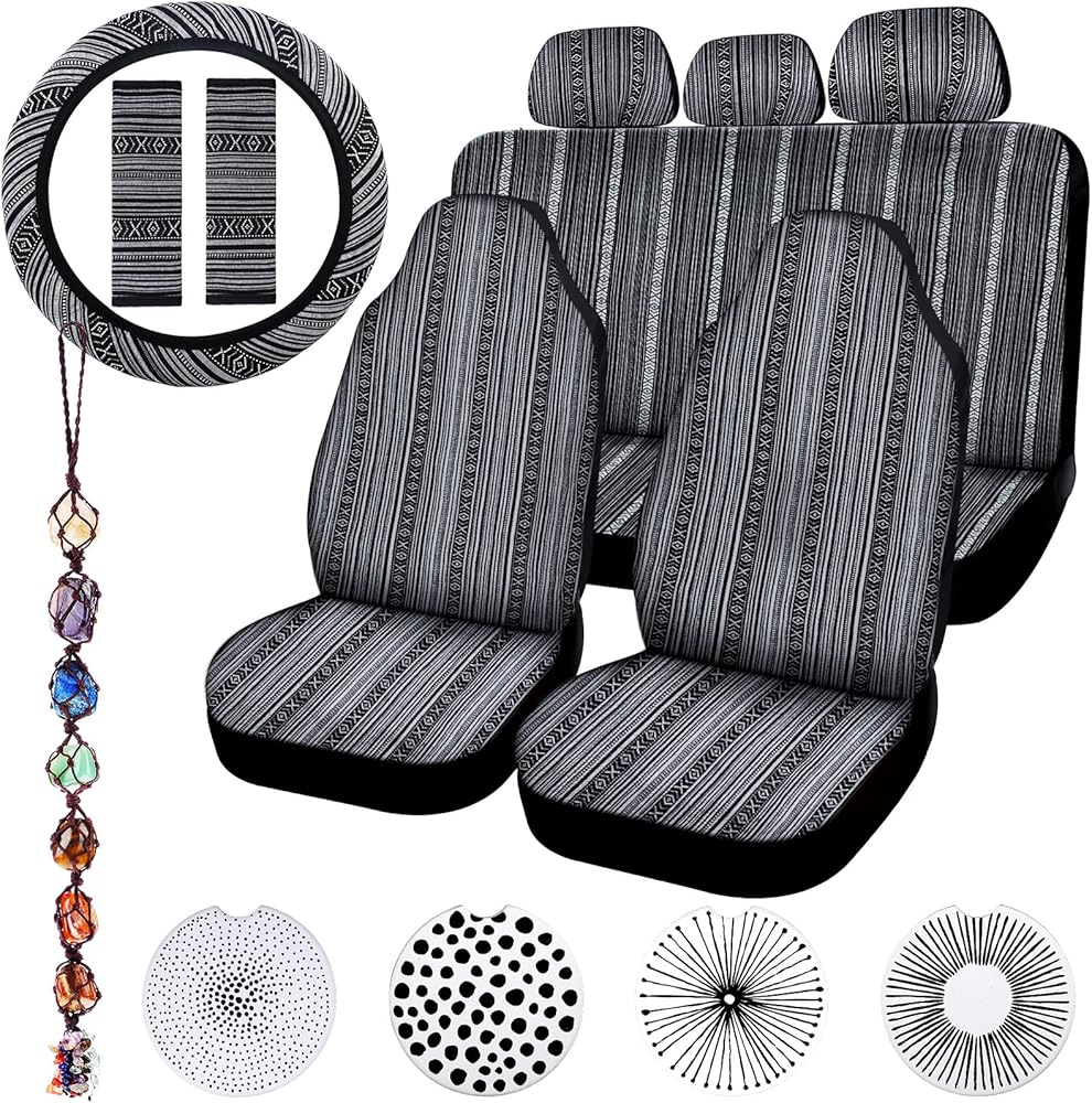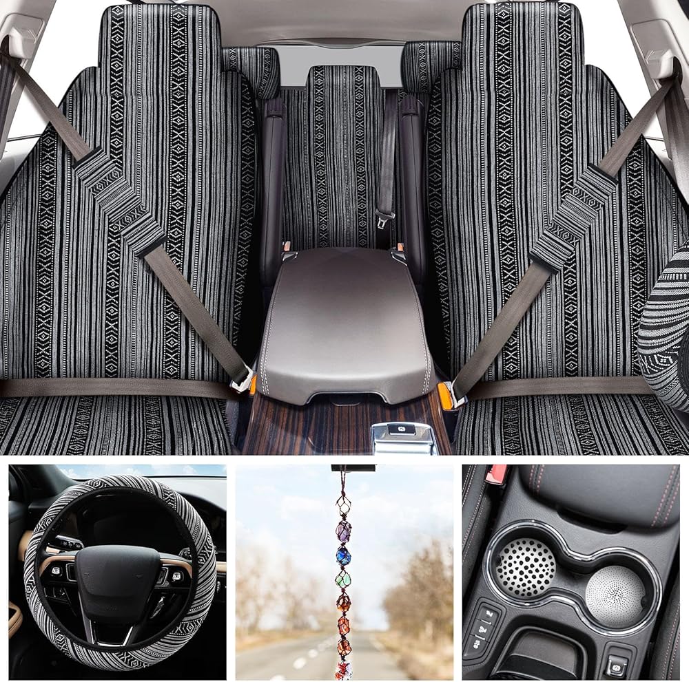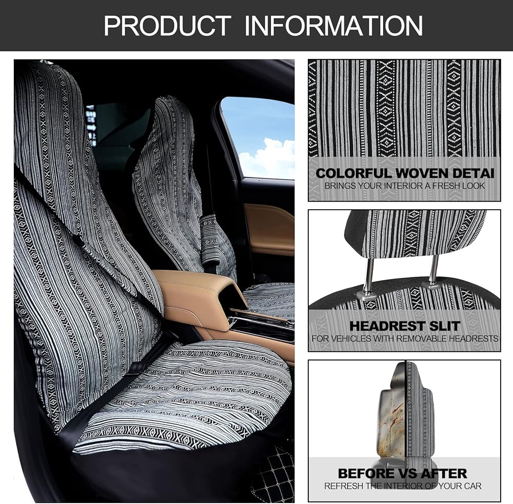 طراز بوهو: مجموعة كاملة من أغطية مقاعد السيارة المخططة متعددة الألوان تتميز بأنماط بوهيمية كلاسيكية، مع لمسة ومظهر أنيق، وحماية ضد الأوساخ، وقيادة آمنة متوافقة مع الوسائد الهوائية الجانبية ومساند الرأس القابلة للتعديل، مناسبة لمعظم المواسم