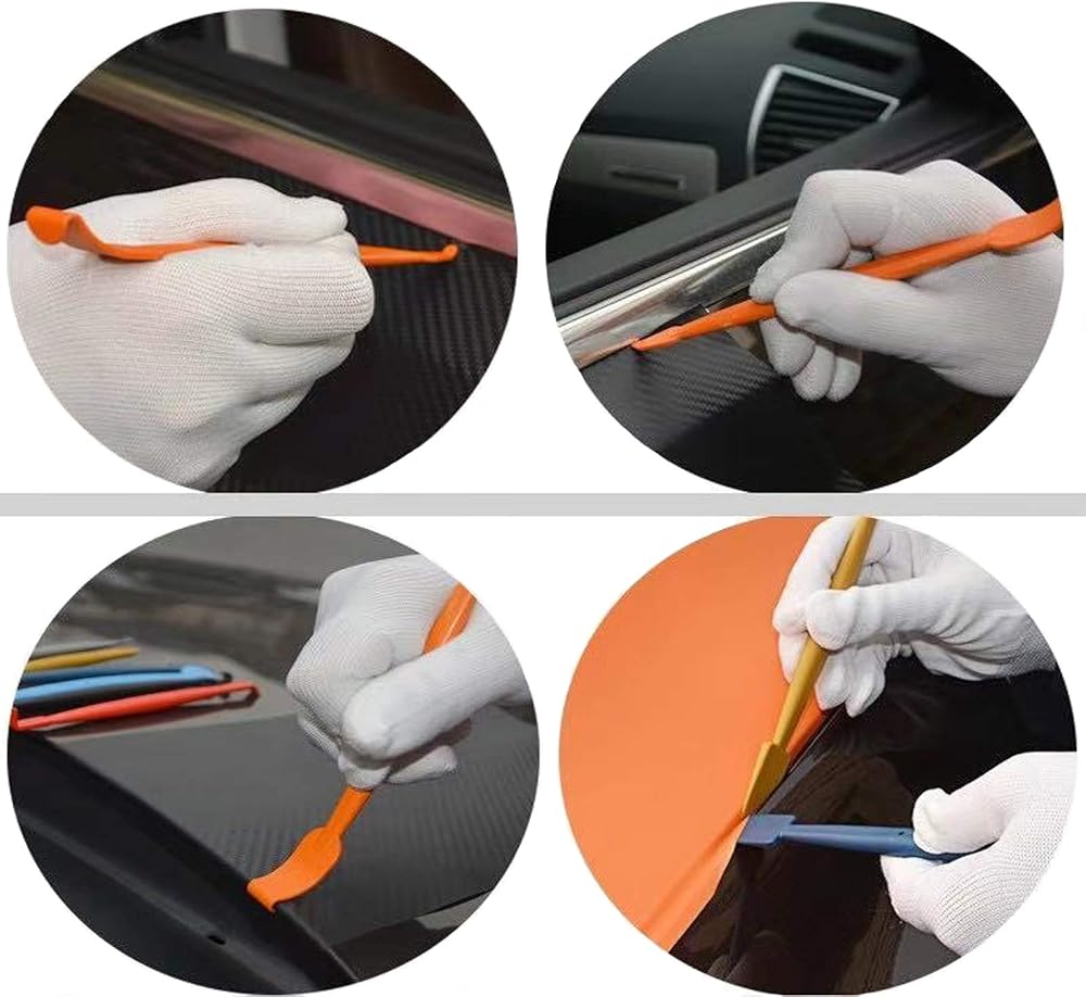 This set is designed to facilitate film application in areas of narrow curves and over the edges of car panels, and to ensure that the film conforms appropriately around the edges of logos and emblems, to create an aesthetically-satisfying application.