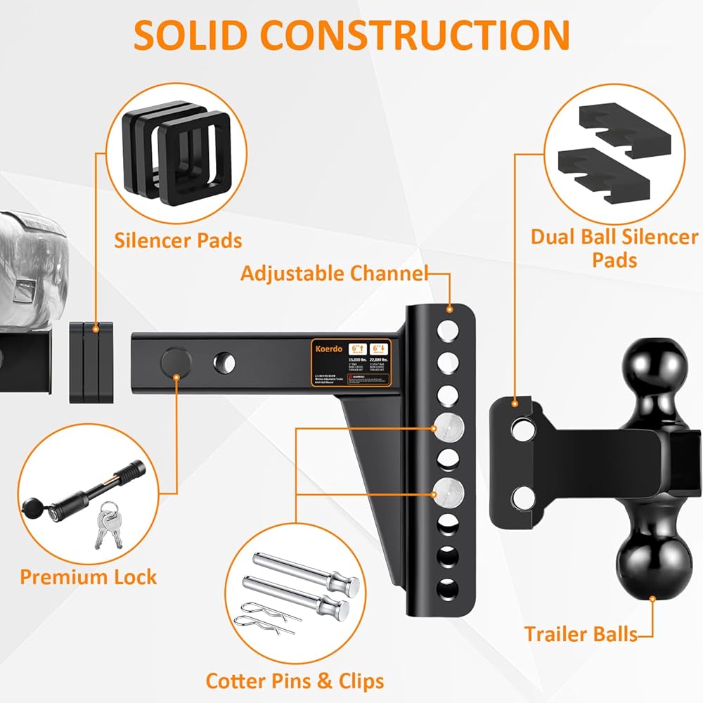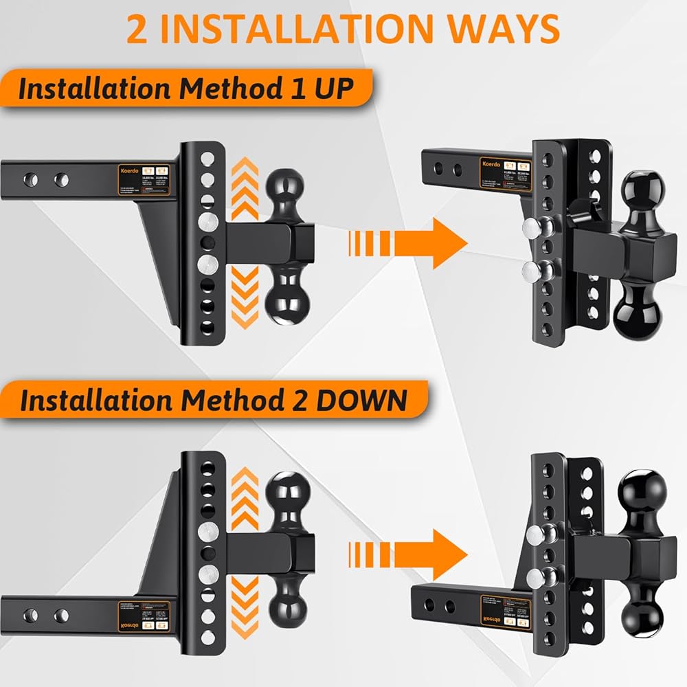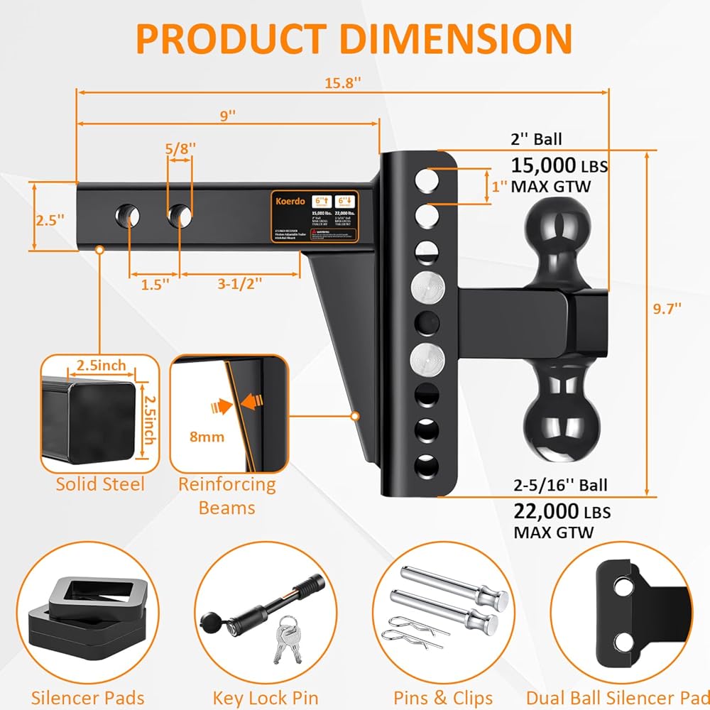 【كرات مزدوجة قابلة للتعديل، ارتفاع/ارتفاع 6 بوصات 】- كرة الربط مقاس 2 بوصة بقدرة سحب تصل إلى 15000 رطل وكرة الربط مقاس 2-5/16 بوصة بقدرة سحب تبلغ 22000 رطل مما يسمح بعمق منسدل 6 بوصات وارتفاع ارتفاع 6 بوصات لذلك يمكن تحويل وصلة الجر بسهولة إلى مقطورات مختلفة دون الحاجة إلى القلق بشأن عدم وضعها في مستوى الجلوس.