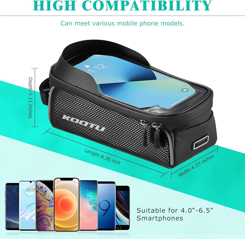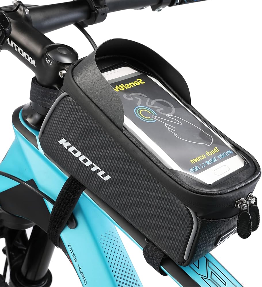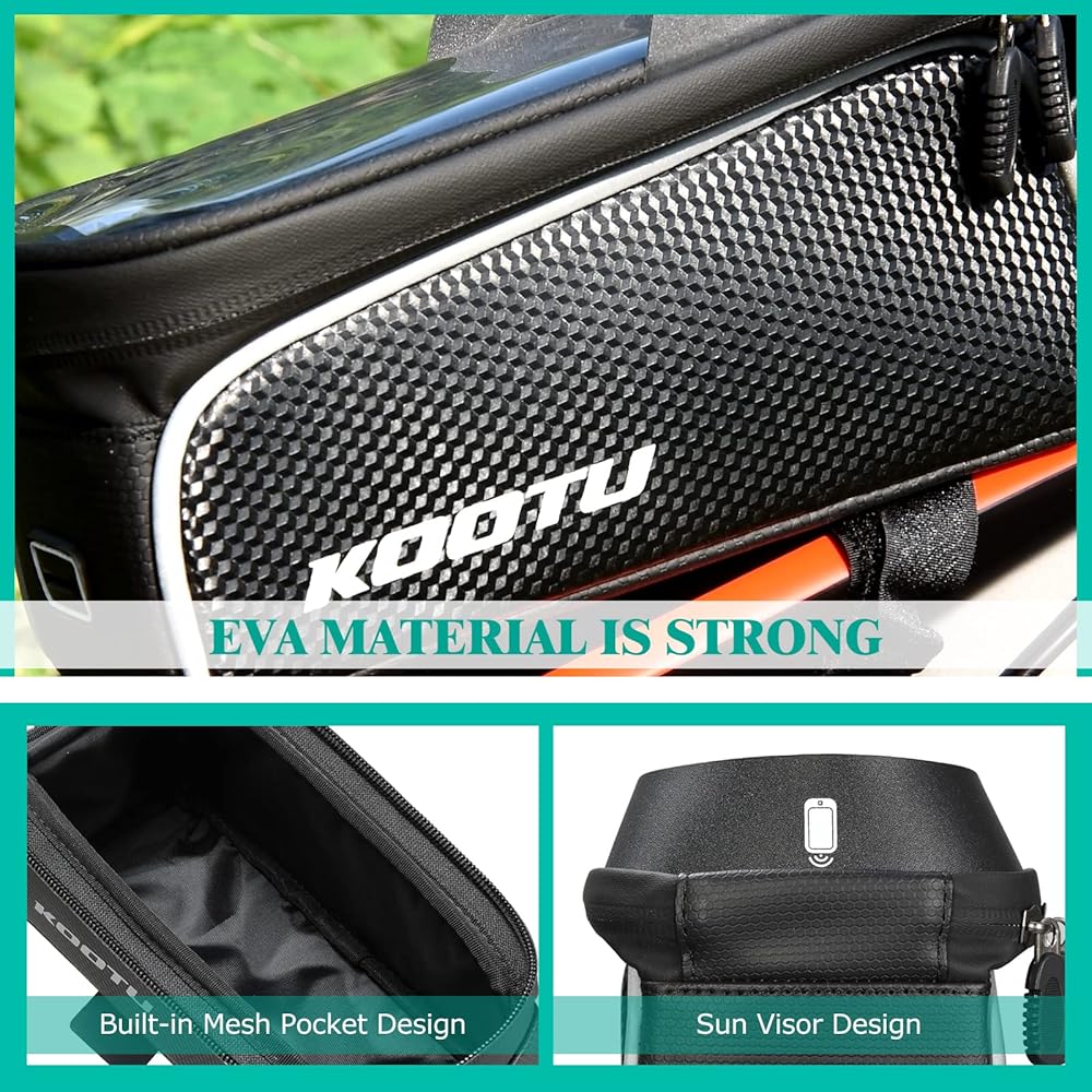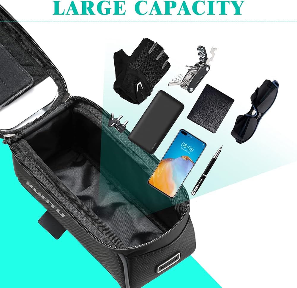 حزمة حقيبة ركوب الدراجات من KOOTU، حقيبة دراجة أنبوبية علوية مقاومة للماء بإطار أمامي مع حامل للهاتف، حزمة ملحقات ركوب الدراجات لدراجة الطريق والدراجة الجبلية.
