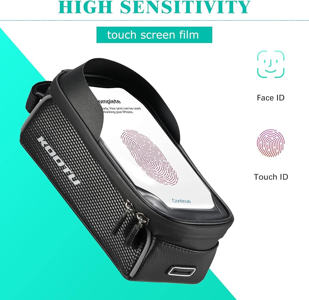 • 【شاشة تعمل باللمس من مادة TPU وفتحة سماعة أذن مخفية】: شاشة اللمس لعلبة التخزين الأمامية للأنبوب العلوي مصنوعة من طبقة TPU مقاس 0.25 مم، والتي تتميز بحساسية ووضوح عاليين. فتحة سماعة الأذن المدروسة مخفية على حقيبة الهاتف المحمول للدراجة، مما يسمح لك بالرد على المكالمات بحرية، أو الاستمتاع بالموسيقى من خلال سماعة الأذن أثناء الركوب.