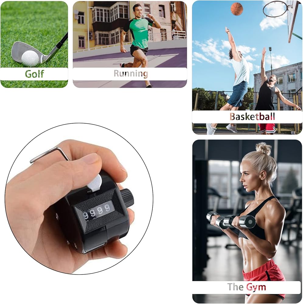 Handy Tally Counter Electronic Clicker Counter Manual Digital Stitch Counters Finger Ring Mechanical Palm Handheld Pitch 4-Digit Display Click Counter Number Count for Row, People, Golf, Lap&Knitting Features:
