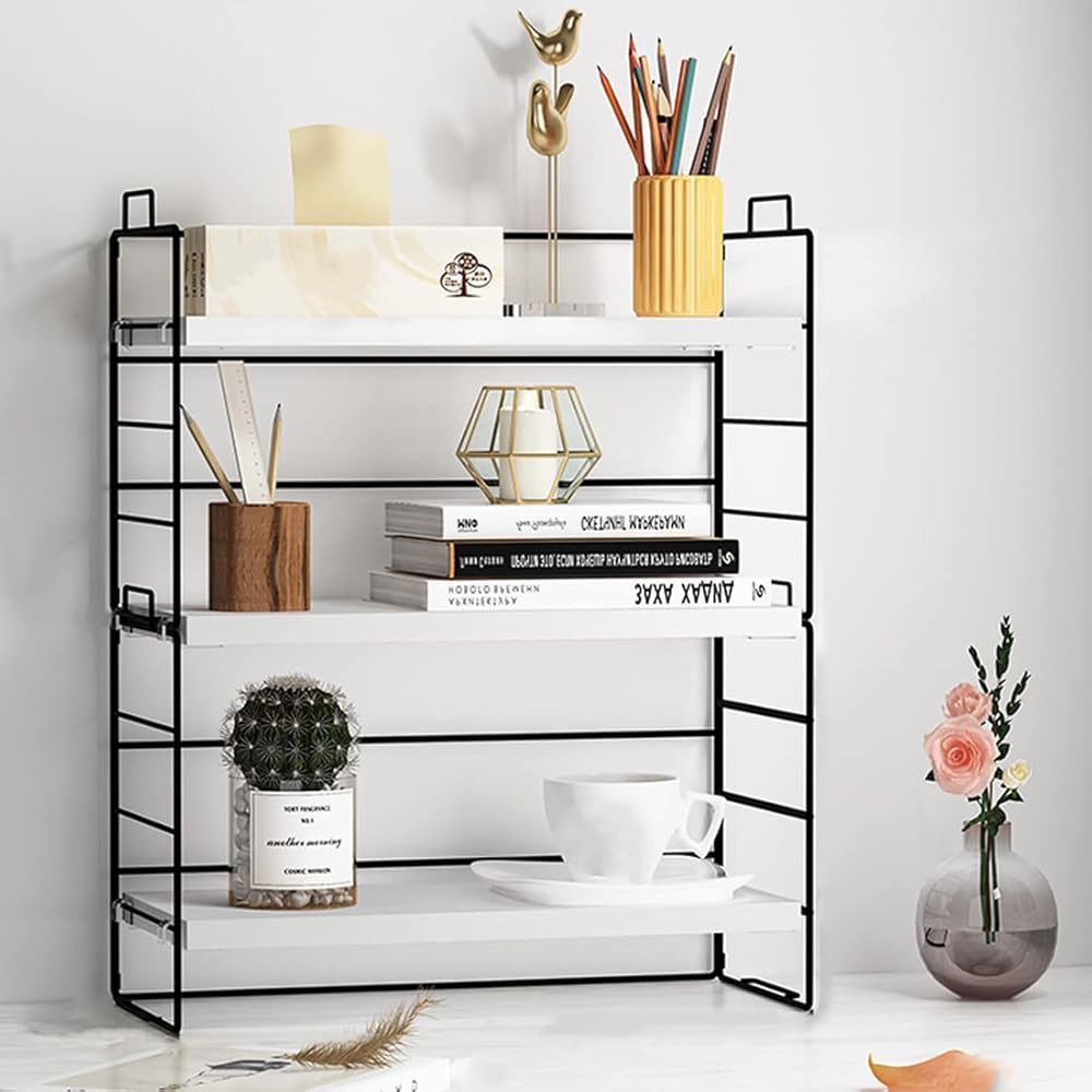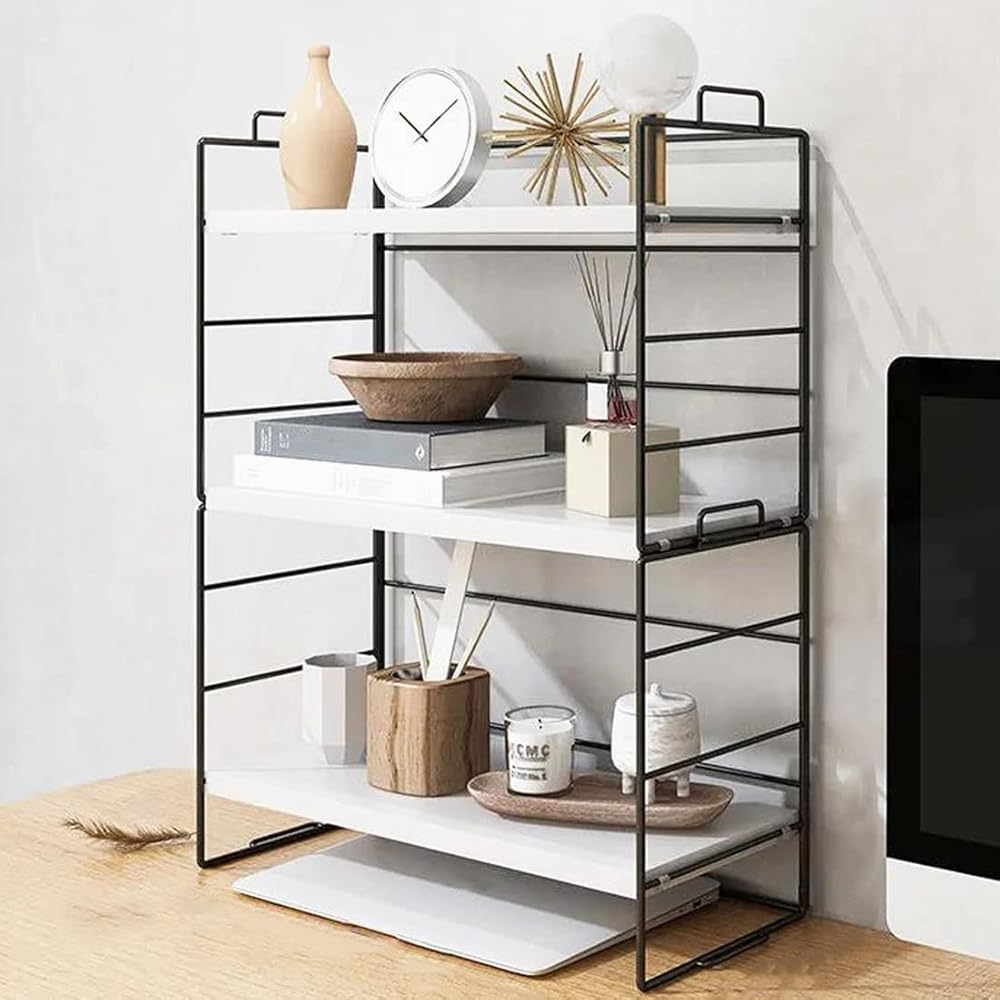 [ Multipurpose ] Desktop organizer shelf is suitable to be placed on the table in the living room, bedroom, kitchen, or office. Can store potted plants, cosmetics, staplers, alarm clocks, decorations, or other office supplies.