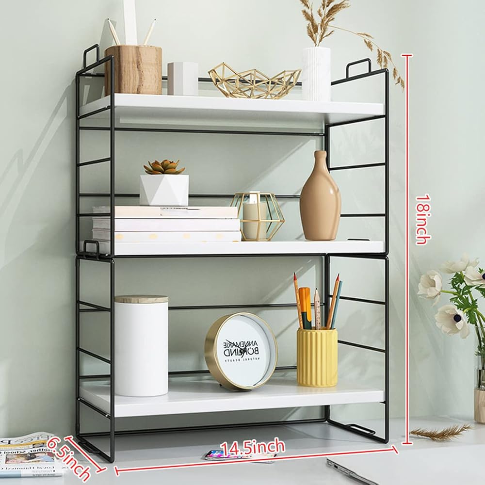 [ Space-saving Design ] The Size of the office Organizer Shelf Storage Rack is 14.5* 6.5 *18.11 inches (LxWxH). The small size makes this storage rack perfect for any desk. A perfect desktop shelf and office shelf. (Please check the size of the desk shelf organizer before buying, please make sure that the size meets your need)