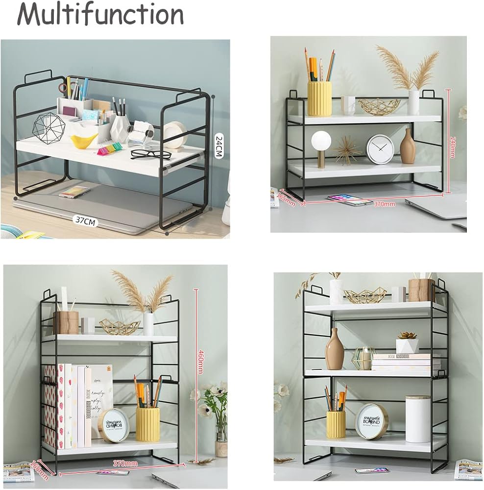 [ Sturdy & Stable ] desktop organizer office storage rack has compact size enhances its stability and makes it stable and non-shake. The thicker wood board gives the desk shelf a strong load-bearing capacity.