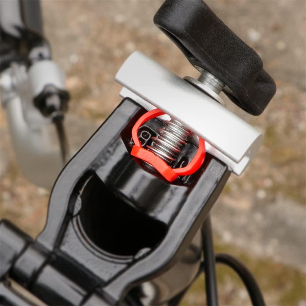 • يمكن طي الدراجة وتحريرها بسرعة دون تعديل زاوية الإبزيم على شكل حرف C.