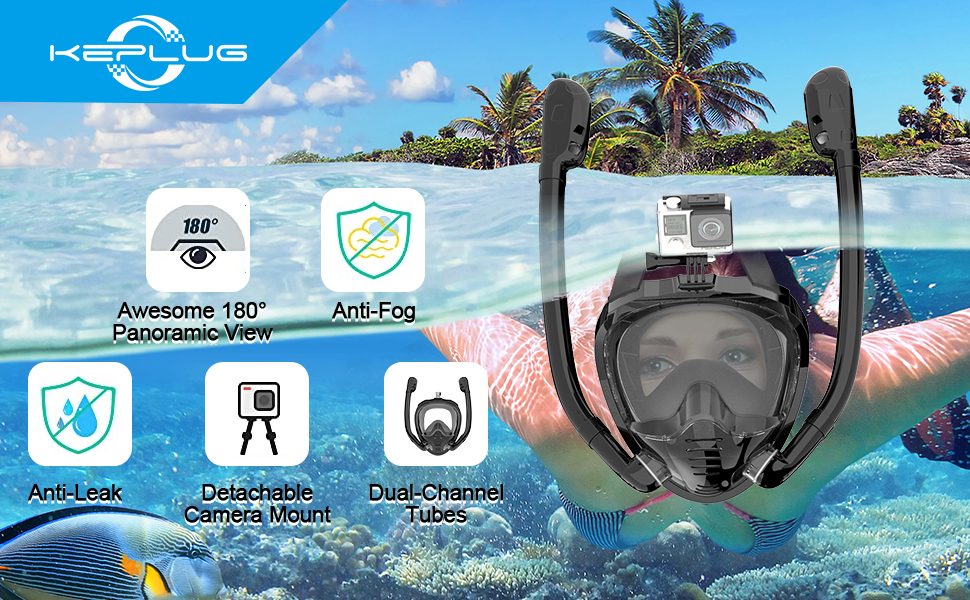 • 🌊【High-Quality 】-KEPLUG Full Face Snorkel Mask Made of High-Quality ABS+PC and Medical Grade Silicone.Very safe and durable.