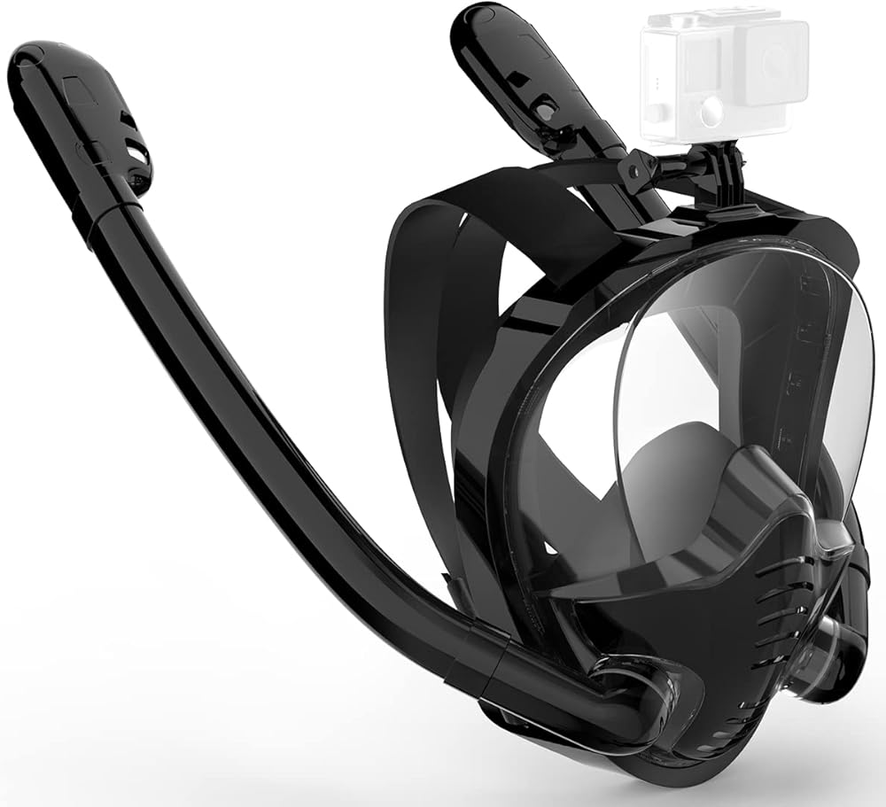 • 🌊【Camera Mount Design】 - The snorkeling mask full face has Camera stand, compatible with removable motion camera, allowing you to capture every amazing moment in the sea and share beautiful snorkeling view with your friends and family.