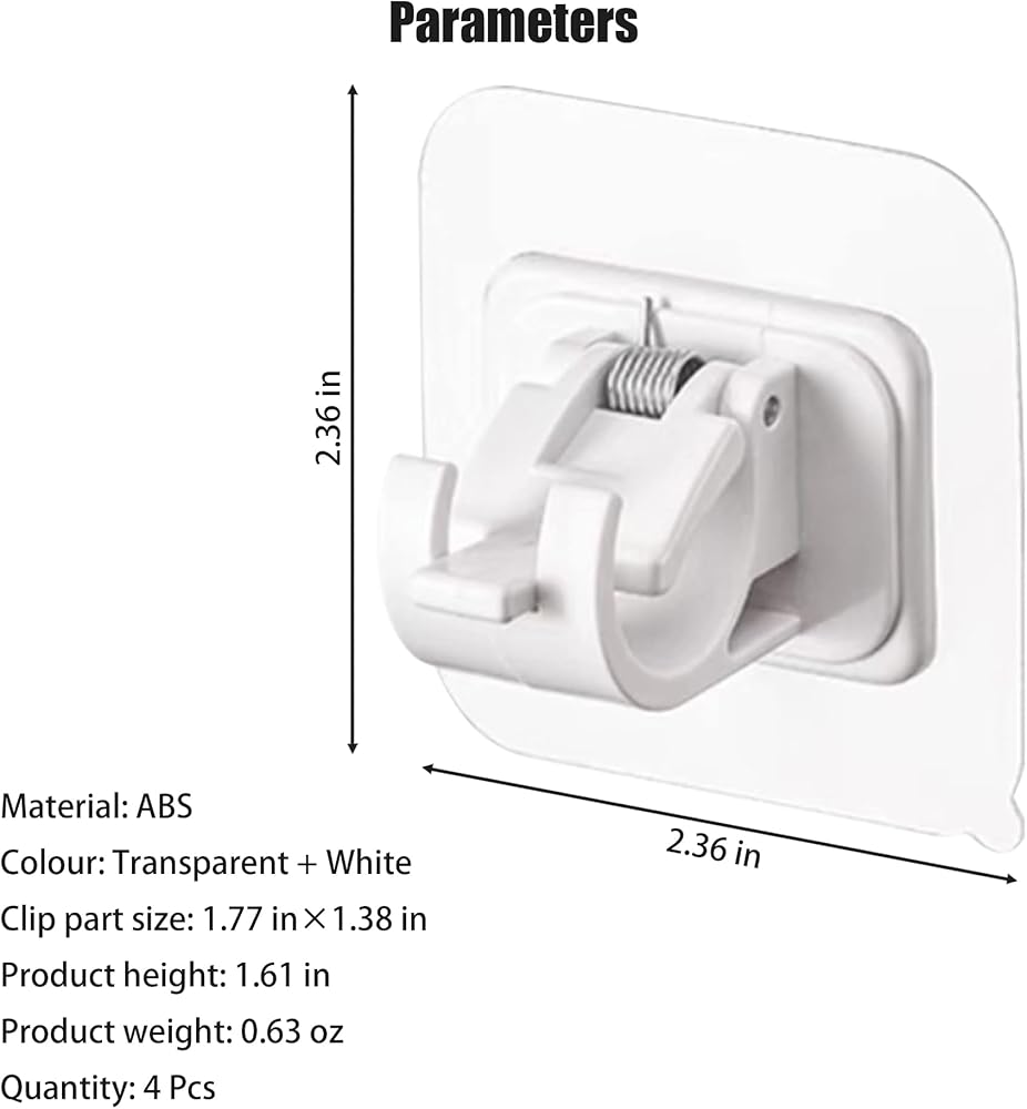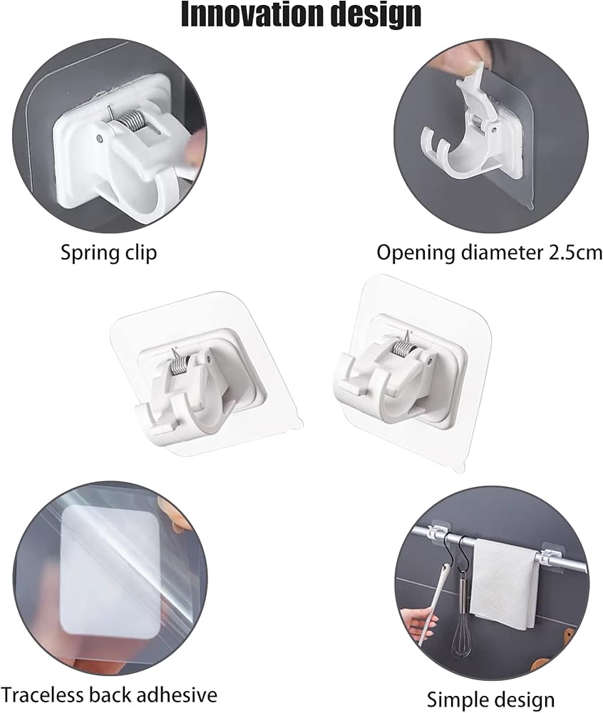 • 【Innovation Design】Shaoduoli self adhesive curtain rod holder adopts spring clip design, which can change and adjust the position of the rod at any time; The opening with a diameter of 2.5cm is suitable for most rods; The Nordic simple design with transparent and white color, witch is fashion and generous; The super back adhesive design protect wall from damage, no nails and easy installation, women and elderly can handle it; The package includes 4 pcs, which can meet the needs of most families.
