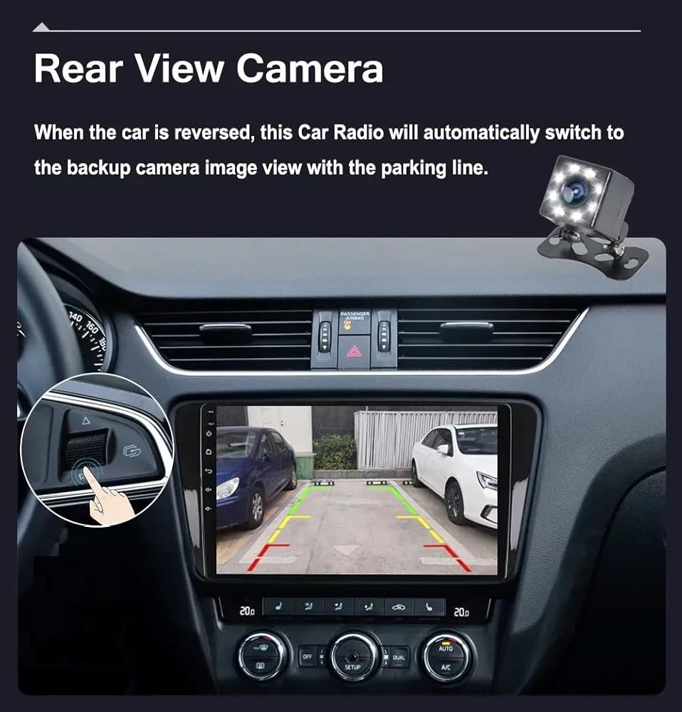 Android Touch Screen Car Stereo with Reversing Camera, easy to install and operate rear view mirror, when the vehicle is backing up, the stereo screen in the car will automatically display the reversing image and record the traffic, making your daily reversing safer and more convenient.
