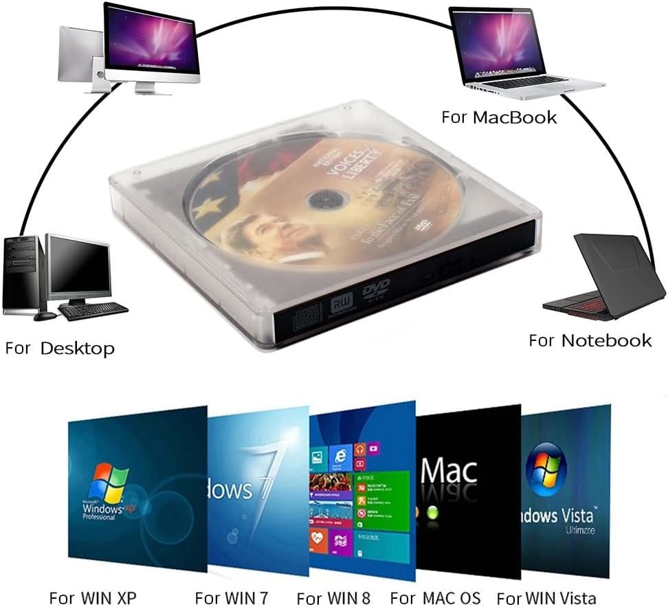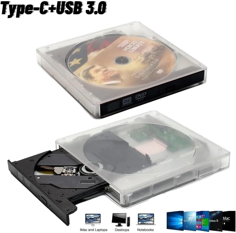 Transparent External Drive USB 3.0/Type-C External DVD RW CD Writer Super Drive Reader Player Optical Drives for Mac/Windows