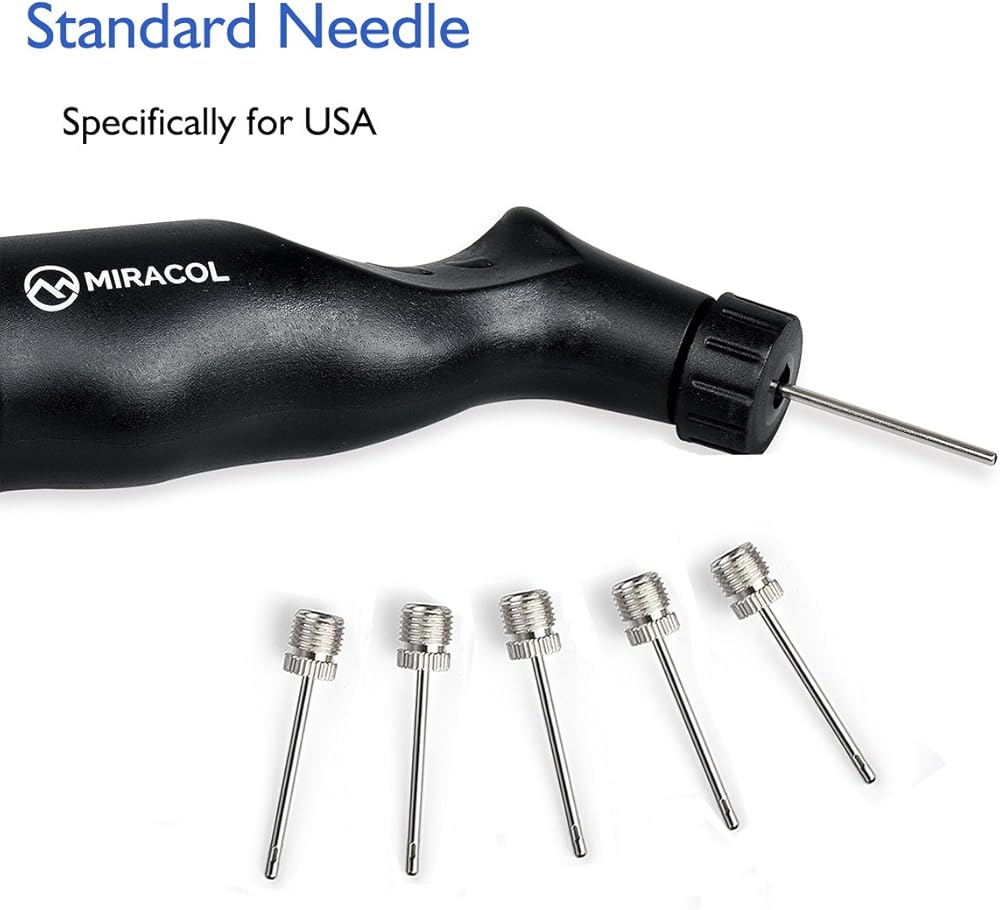 تم توفير ست إبر إضافية: لا داعي للقلق بشأن الإبر المفقودة أو المكسورة. تتضمن مضخة الهواء الكروية الرياضية الخاصة بك إبرة مثبتة وستة قطع غيار، مما يضمن أنك مستعد دائمًا لأي احتياجات نفخ.