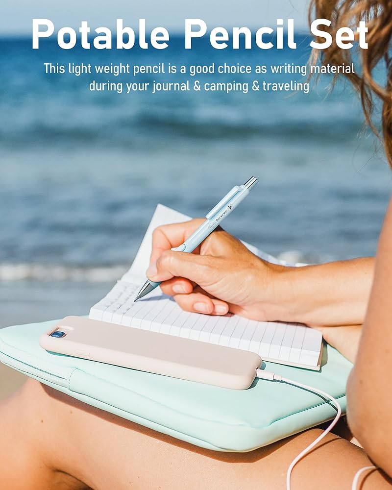 【قبضة مريحة】: تم تصميم أقلام الرصاص الميكانيكية مقاس 0.7 مم بميزات مريحة لتعزيز الراحة أثناء جلسات الكتابة أو الرسم الممتدة. قبضة مطاطية مريحة غير قابلة للانزلاق وناعمة للغاية لتقليل تعب اليد وتحسين تجربة الكتابة بشكل عام.