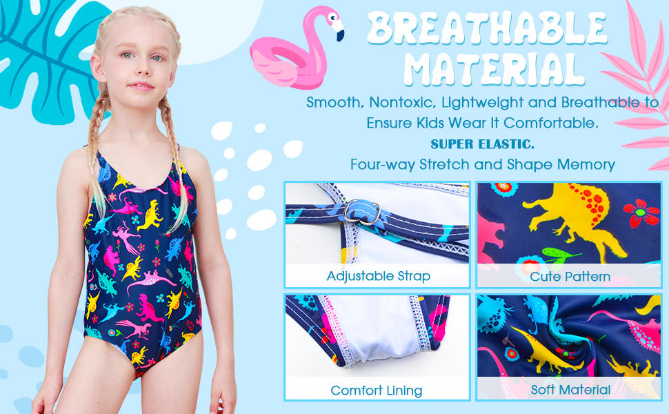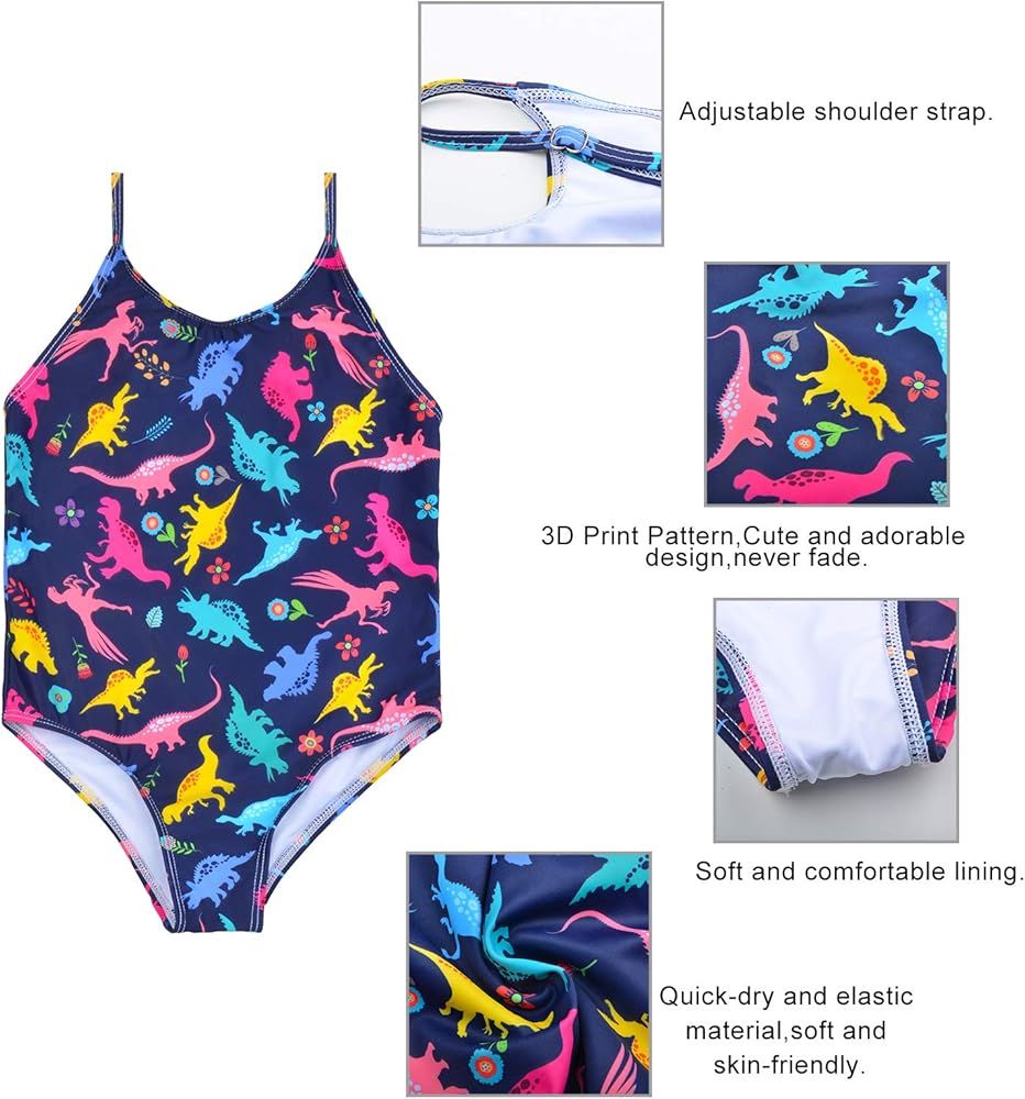 MATERIAL:The baby girls swimsuit is made of 80% polyester and 20% spandex.Spandex has good elasticity,enough space for a growing child.No wrinkle,no pilling,thin and Skin-friendly.