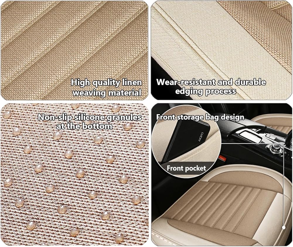 BREATHABLE CAR SEAT CUSHION: Designed with linen with excellent stitching for a luxurious experience and high durability. with a soft, breathable sponge layer for extra comfort - It's moisture wicking and skin friendly for long driving. The outer natural linen fabrics helps to breathe freely and absorb sweat.