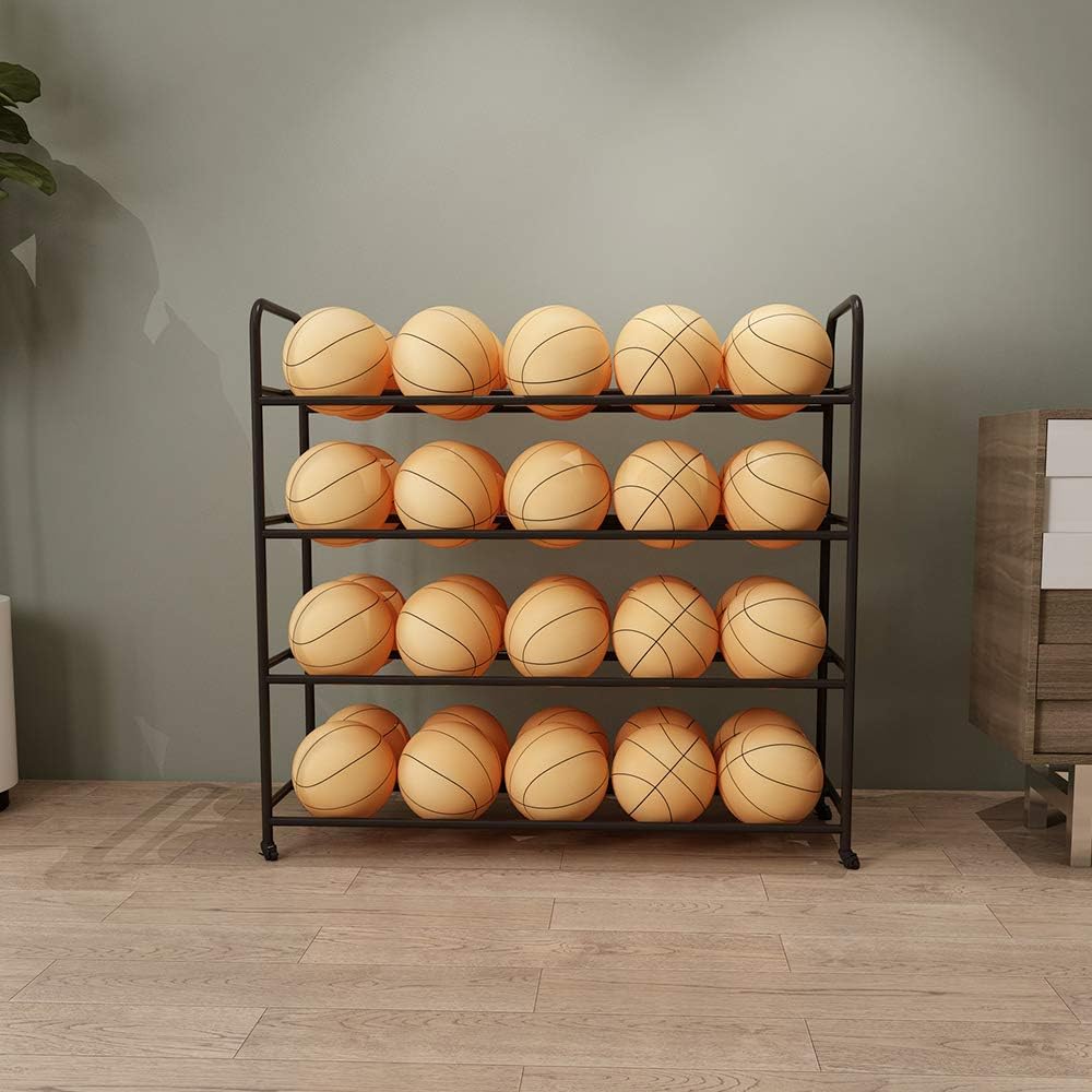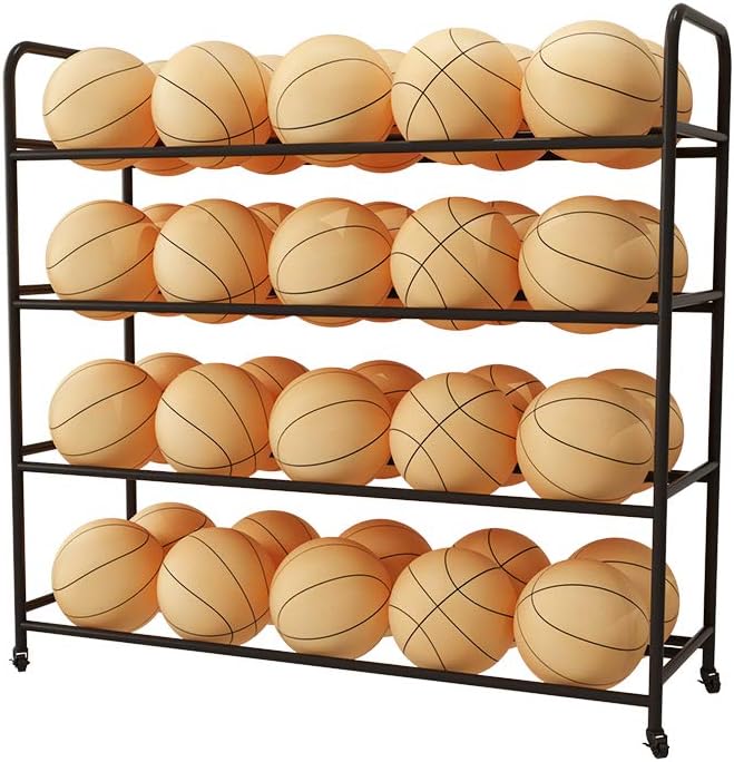 Basketball Racks for Balls with Wheels,Iron Basketball Display Stand Equipment,Ball Cart Ball Racks for Garage Ball Holder(Black,4-Tier,40 Balls)