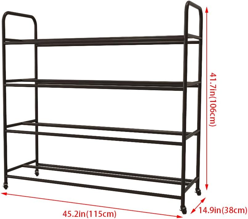 Basketball Racks for Balls with Wheels,Iron Basketball Display Stand Equipment,Ball Cart Ball Racks for Garage Ball Holder,Volleyball Sports Ball Storage Ball Organizer(Black,4-Tier,40 Balls)