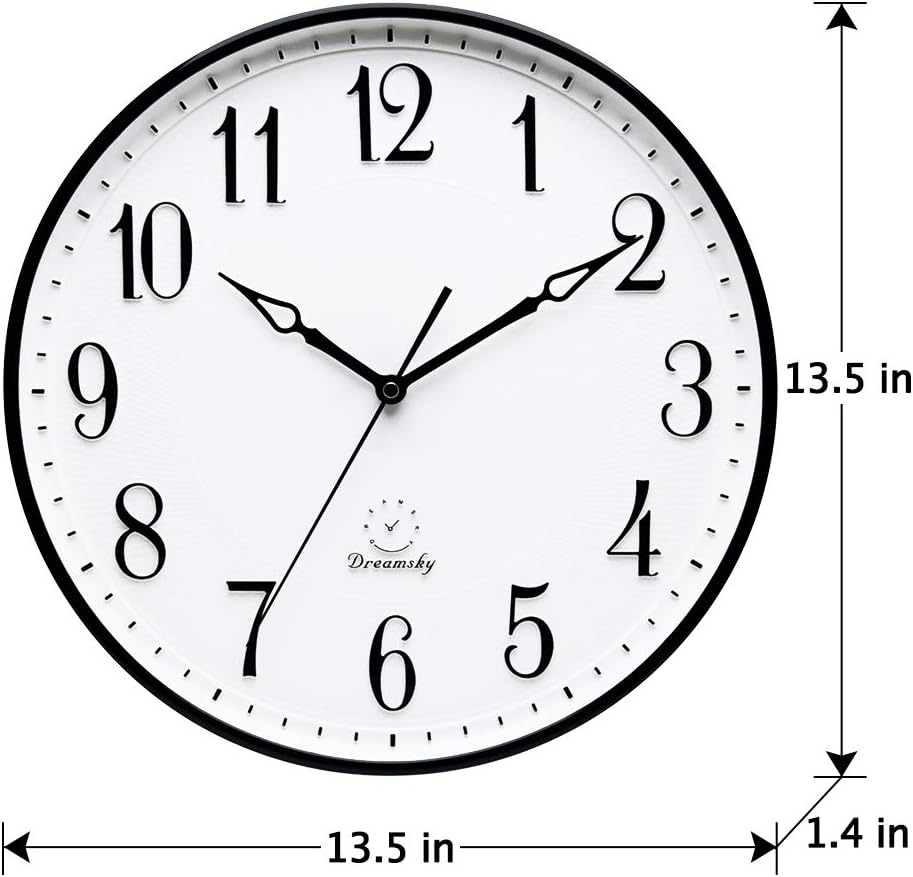 ساعة حائط كبيرة جدًا مقاس 13.5 بوصة من DreamSky لديكور غرفة المعيشة - ساعات حائط كبيرة صامتة غير موقوتة تعمل بالبطارية للمطبخ وغرفة النوم والمكتب والفصول الدراسية سهلة القراءة