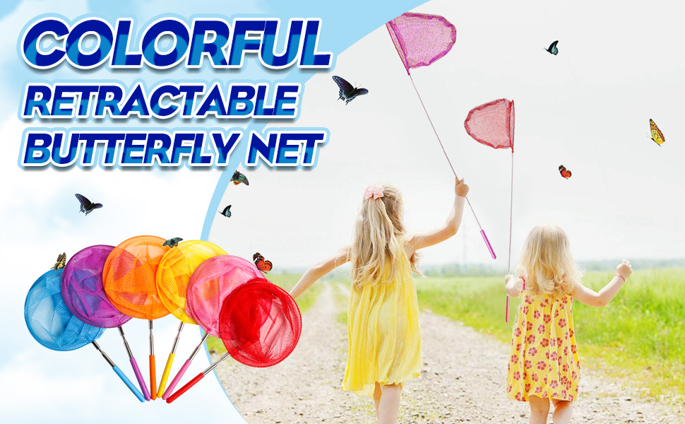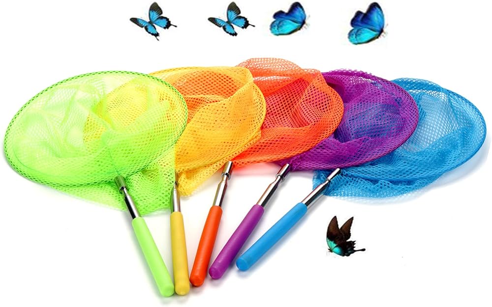 USATDD أطفال تلسكوبي فراشة شباك الصيد كبيرة لاصطياد الحشرات الحشرات الأسماك كاتربيلر الدعسوقة شبكات أدوات خارجية ملونة قابلة للتمديد 34 بوصة (5 حزمة)