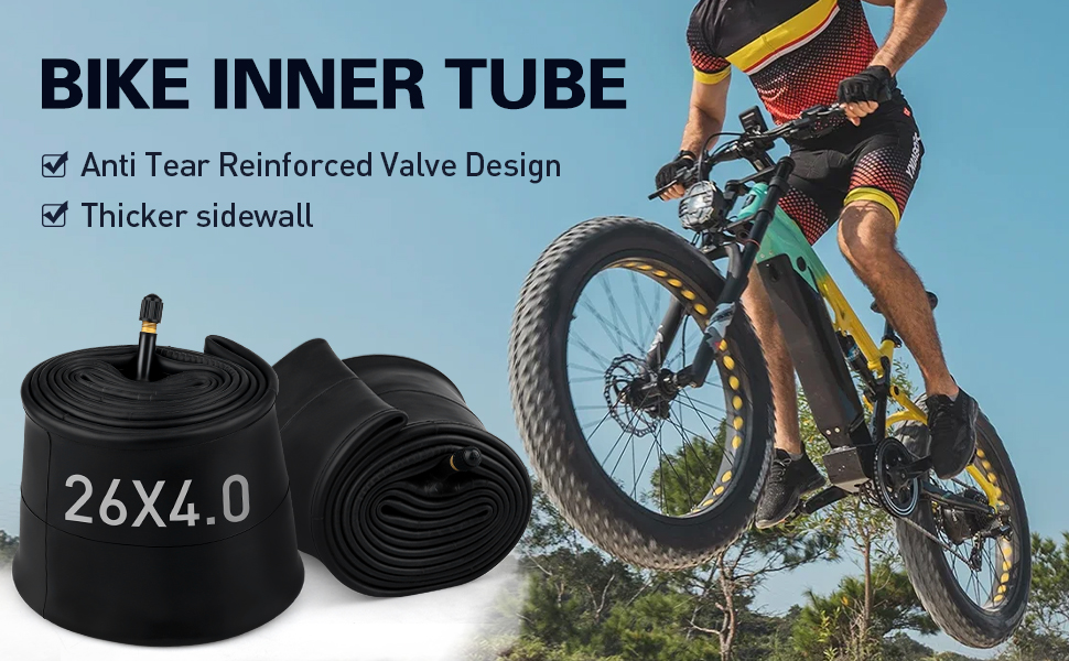 【أنبوب إطار دهني عالي الجودة】 أنبوب الدراجة مصنوع من مطاط البوتيل الفاخر. ضيق هواء أفضل، متين وامتصاص الصدمات. لن تشعر بأي مطبات، لن تشعر بأي نتوءات، أنبوب الدراجة المتطور 26 × 4 يضيف راحة أثناء الركوب، يجب أن يكون خيارك الأفضل.