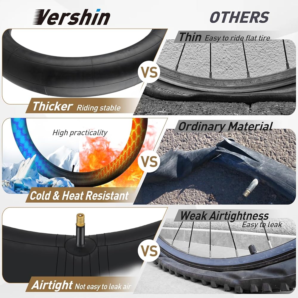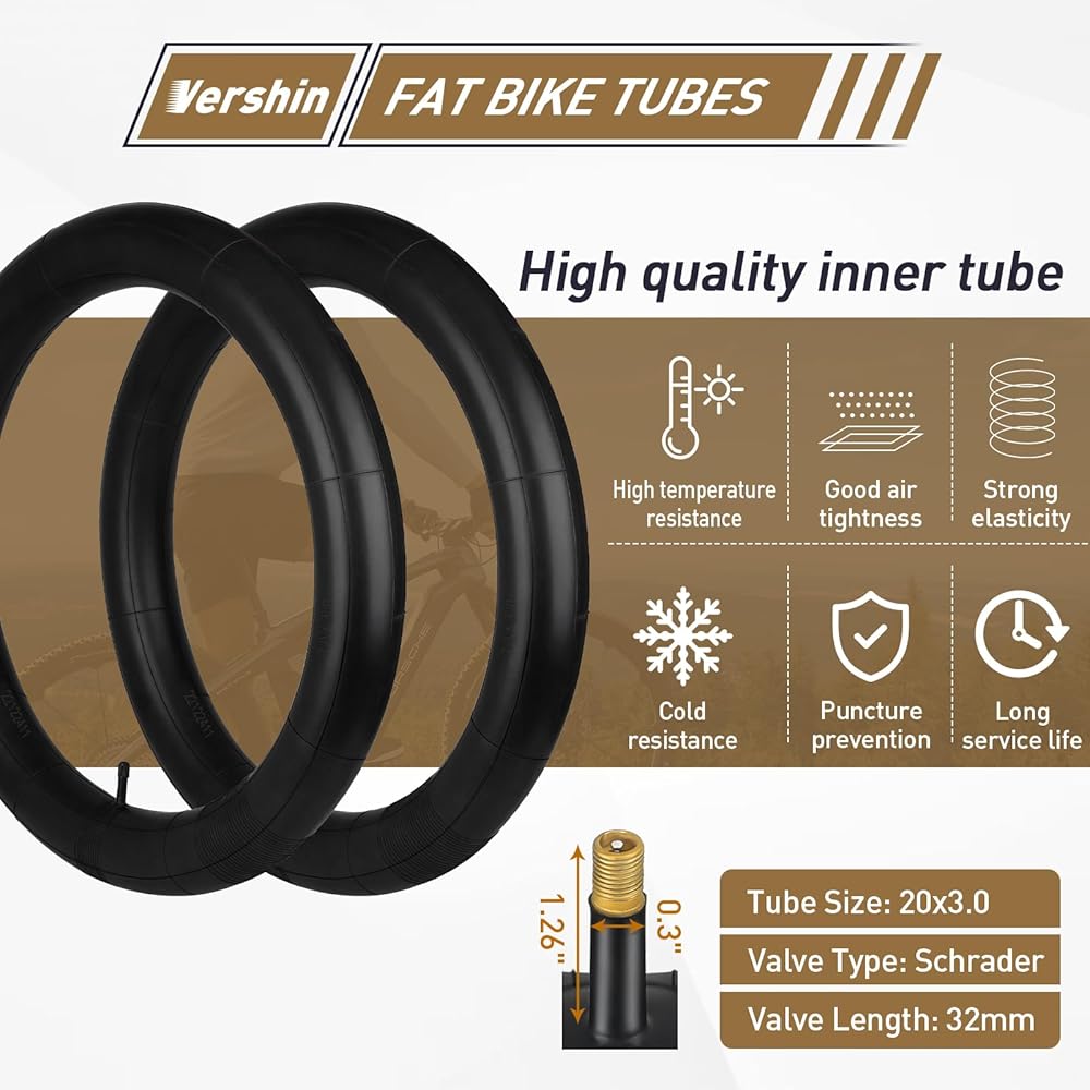 【أنبوب الدراجة 26 بوصة × 3.5-4.0 】 الأنبوب الداخلي 26 بوصة × 4 يناسب معظم الدراجات ذات الإطارات الدهنية بإطارات 26 بوصة يتراوح عرضها بين 3.5 بوصة إلى 4.0 بوصة. متوافق مع صمام شريدر 32 مم. تتضمن العبوة قطعتين من أنابيب الدراجة السميكة مقاس 26 بوصة × 3.5/4.0، وقطعتين من رافعات الإطارات