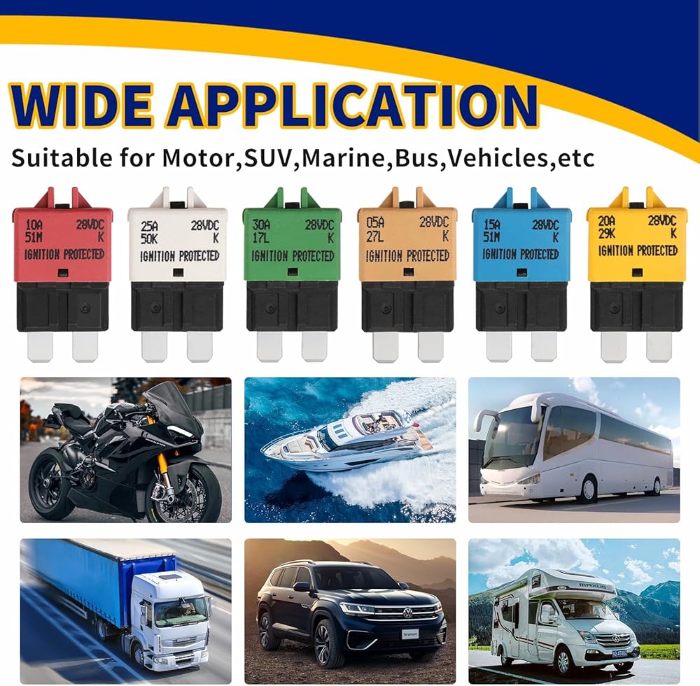 - معلومات المنتج:Tiooka MINI ATM قواطع دوائر إعادة الضبط التلقائية 5A/ 10A/ 15A/ 20A/ 25A/ 30A 12V 6 Pack
