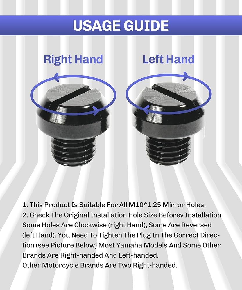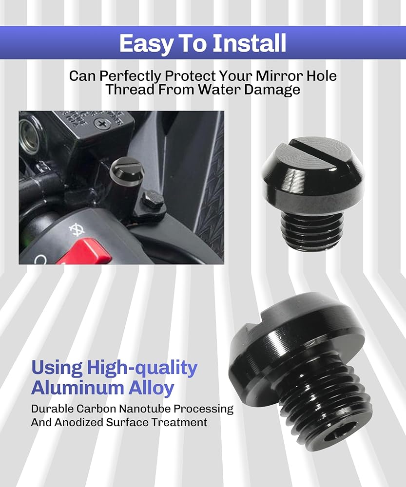 [Easy to Install] The motorcycle mirror hole plug screw is easy to install and can be screwed in by hand or with a simple tool within one minute.