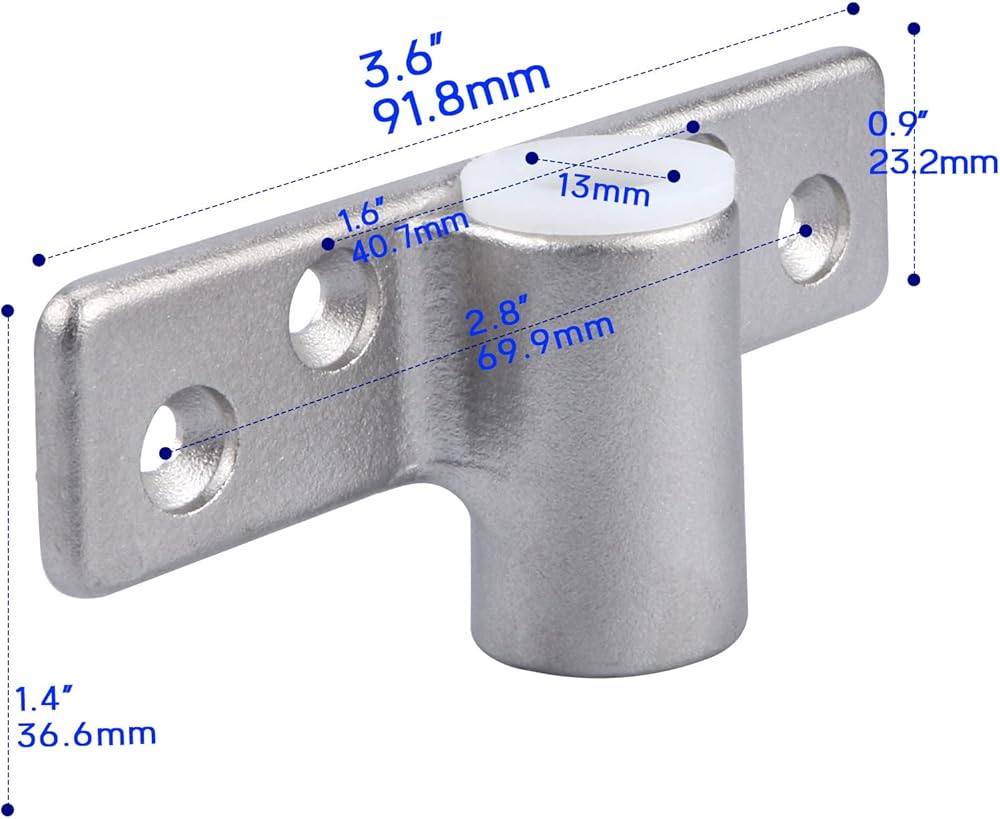 - 4).الأبعاد: الطول: 5-1/6 بوصة (131 مم)؛ طول العمود: 2-1/8 بوصة (54 مم)؛ قطر العمود: 1/2 بوصة (12.5 مم)؛ يناسب قطر المجاديف من (46 مم - 56 مم) )