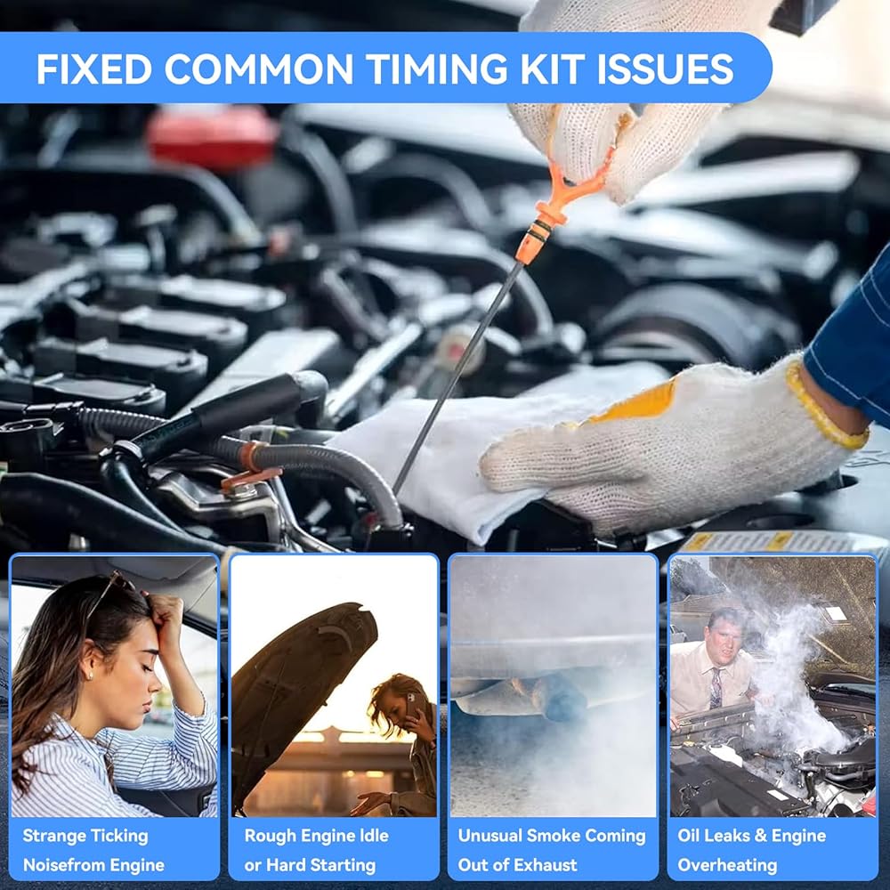 【جودة عالية】مجموعة حزام توقيت المحرك مصنوعة من مواد عالية الجودة مقاومة للتآكل وعالية الصلابة، ضوضاء منخفضة، وفي الوقت نفسه تستعيد وظيفة النظام بشكل فعال للحصول على أداء مناسب.