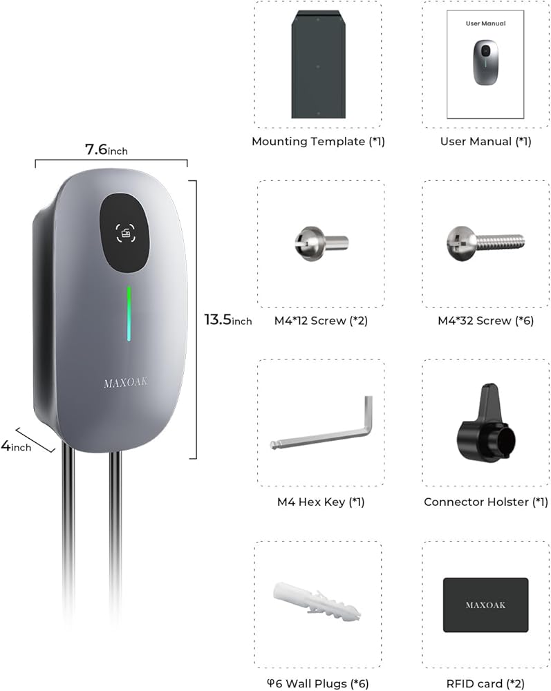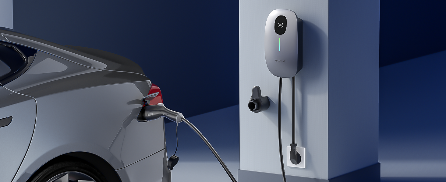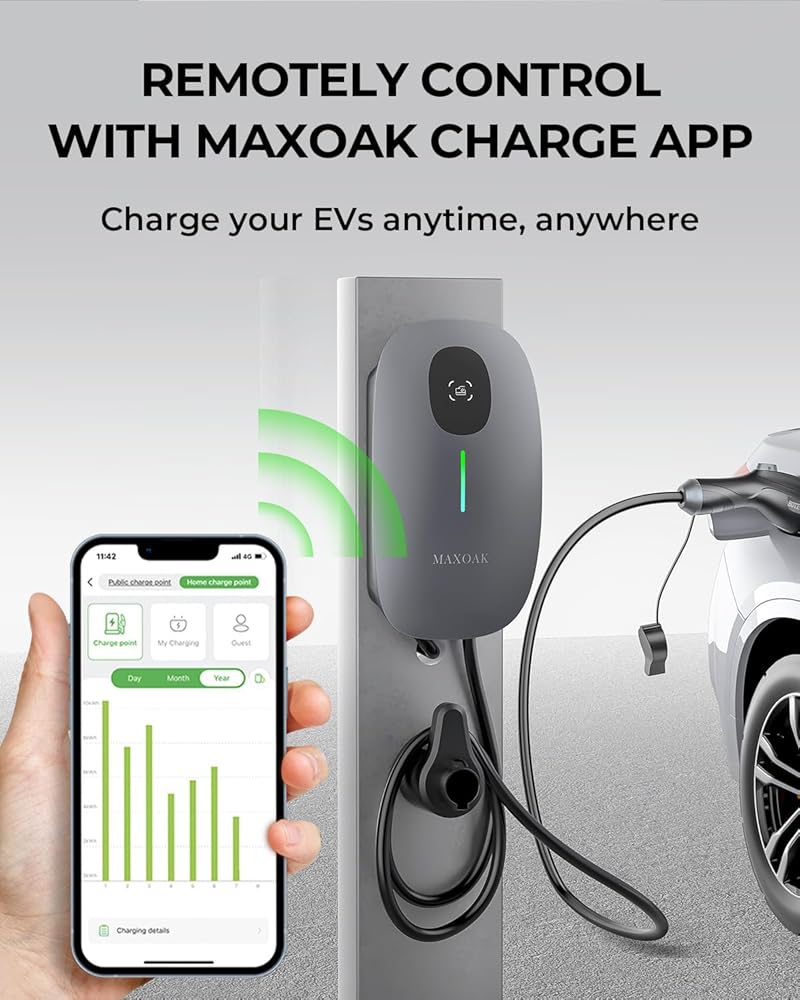 MAXOAK Electric Vehicle Charger - Adjustable 16A to 50A Output Current, Level 2, 240V, Hardwired, CSA Certified & NEMA Type 4, Smart APP Control, Compatible with All EV Brands
