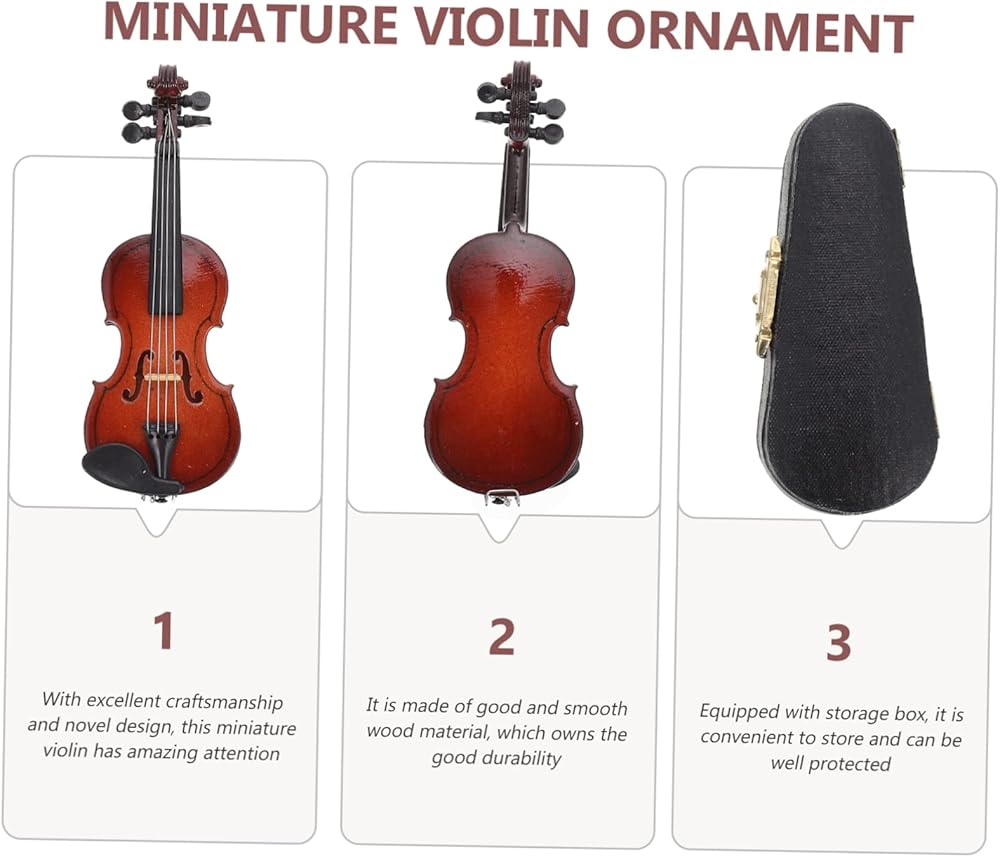 - كمان للأعمار من 5 إلى 9 سنوات: نموذج كمان خشبي مصغر يمكن استخدامه كدعامة للصور أو كزينة لسطح المكتب، مما يمكن أن يخلق عالمًا موسيقيًا صغيرًا.