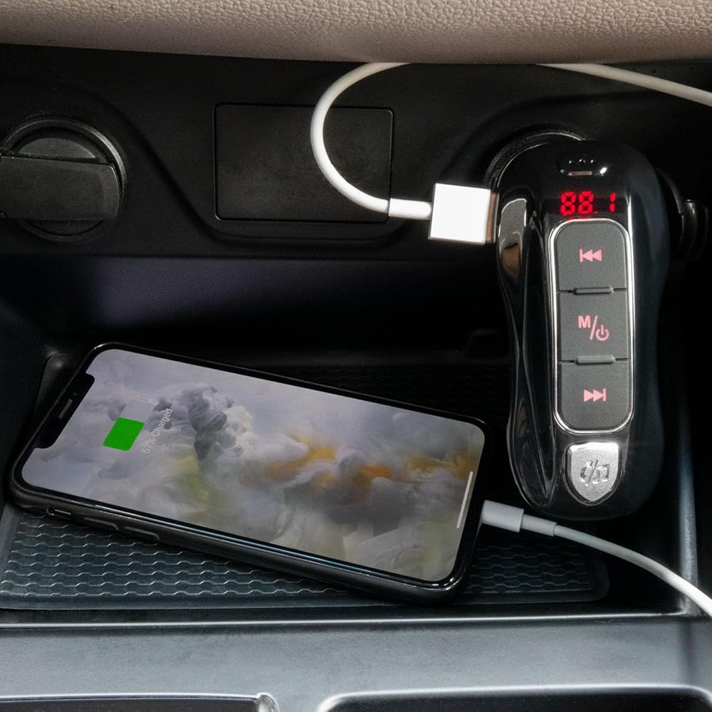 • Our Bluetooth-enabled transmitter allows you to make hands-free calls and stream music from your device through your car radio