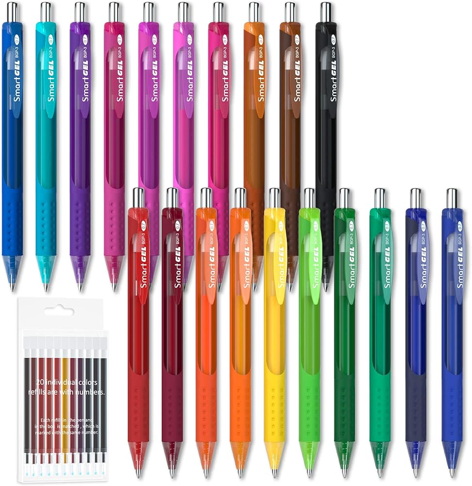 Smart Color Art 40 Pack Set, 20 Colored Gel Pens With 20 Matched Refills, Medium Point Retractable Gel Ink Pens With Comfortable Grip, Great for Journal Notebook Planner in School Office