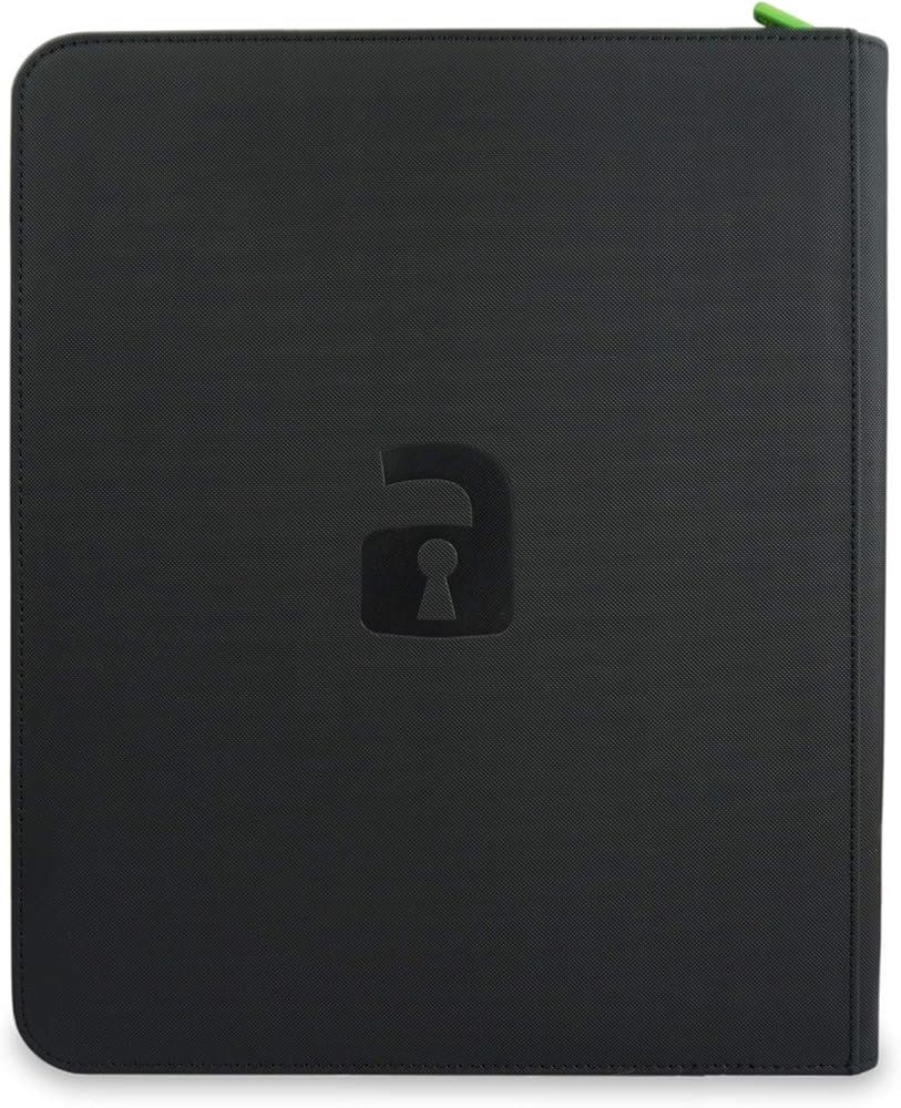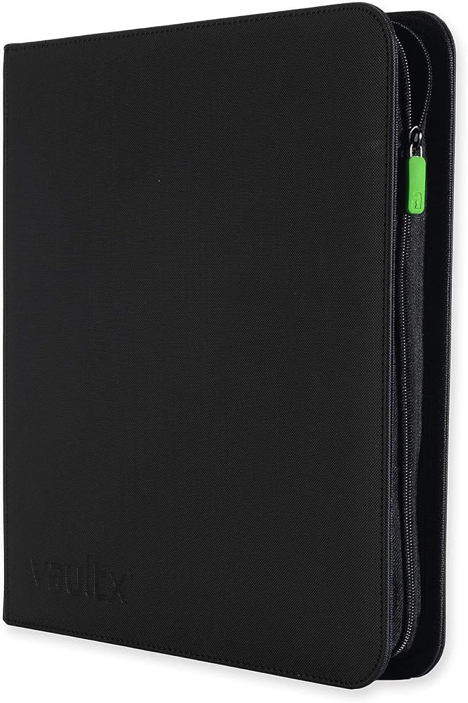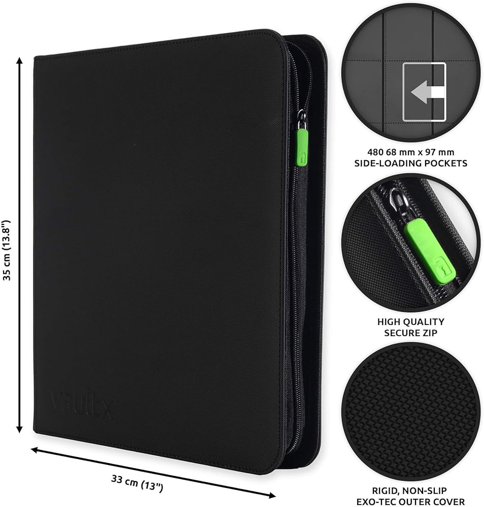 Vault X Premium Exo-Tec Zip Binder 12 جيبًا، 20 صفحة مزدوجة الجوانب لـ 480 فتحة تحميل جانبية للوحة أو تجميعها أو ألبوم المجلدات الواقي لألعاب البطاقات (أسود)